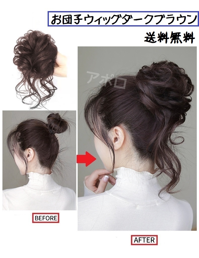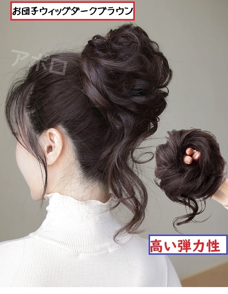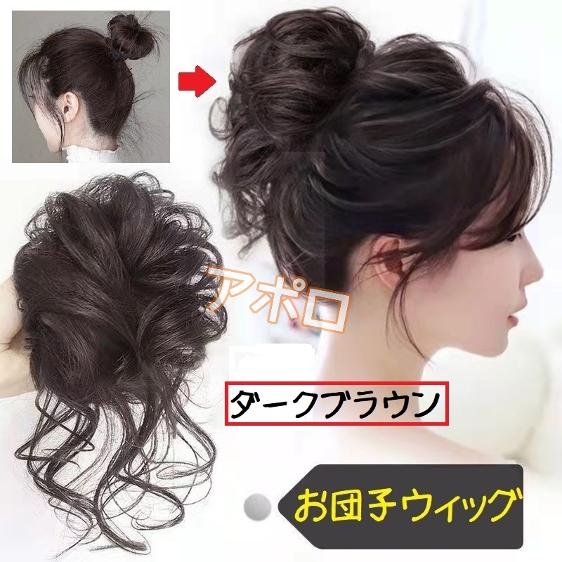 送料無料 お団子ウィッグ ダークブラウン つけ毛 ヘアアクセサリー 茶色 No.907 B