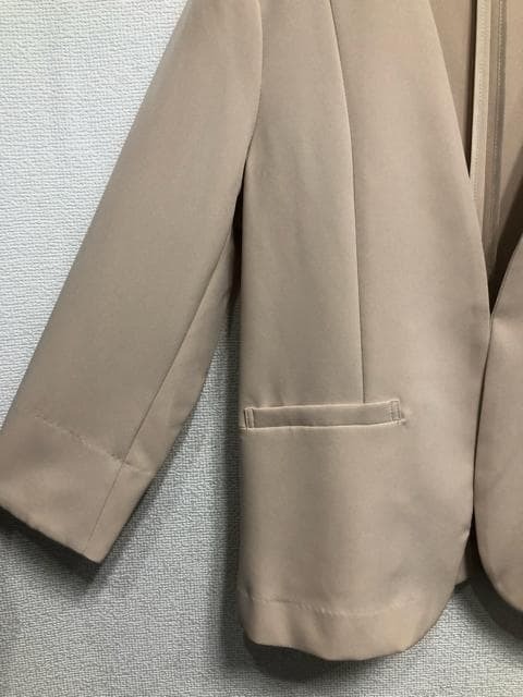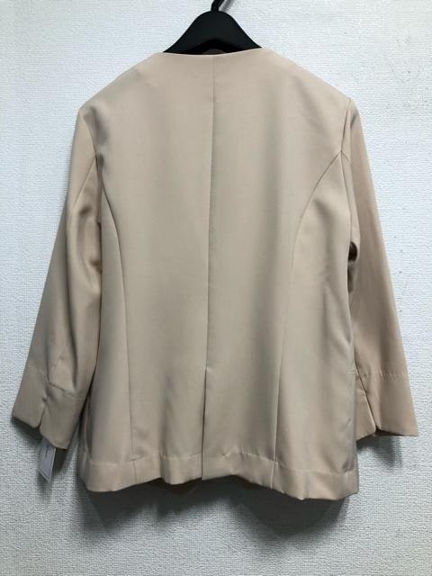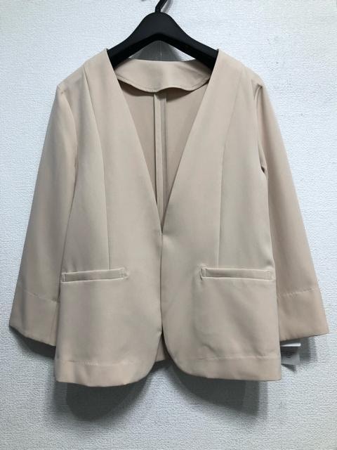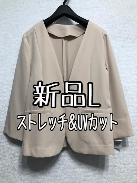 新品☆Lベージュ系♪ノーカラージャケット♪ストレッチ&UVカット☆r659
