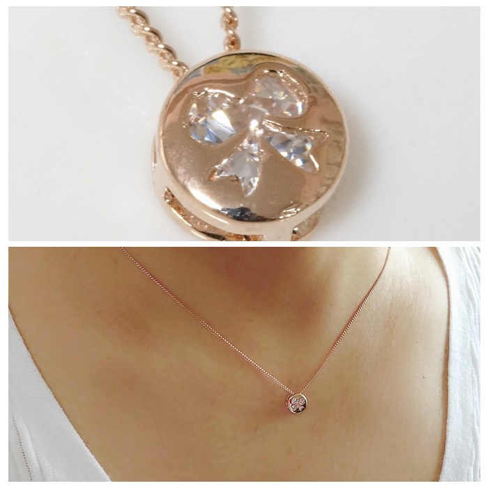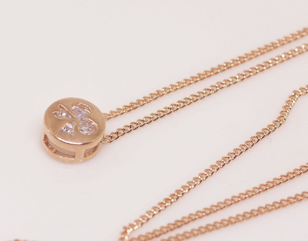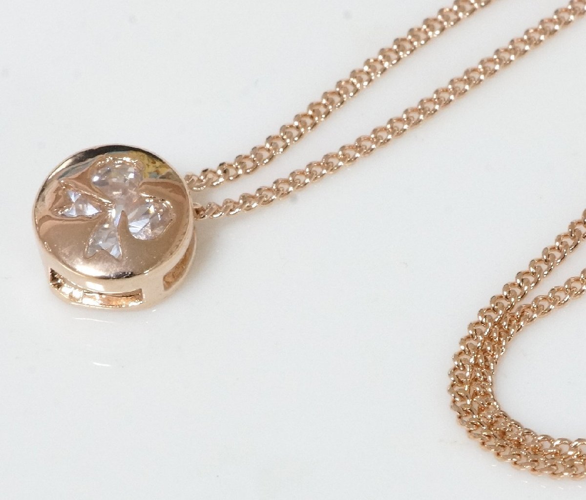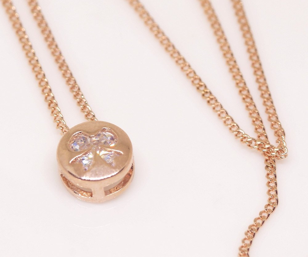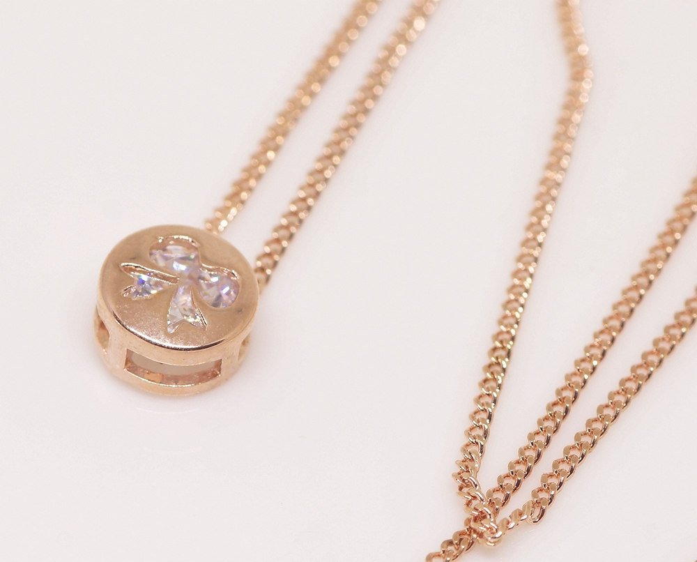 | 18KRGPゴールドCZリボン1粒揺れネック pn3592 | |
