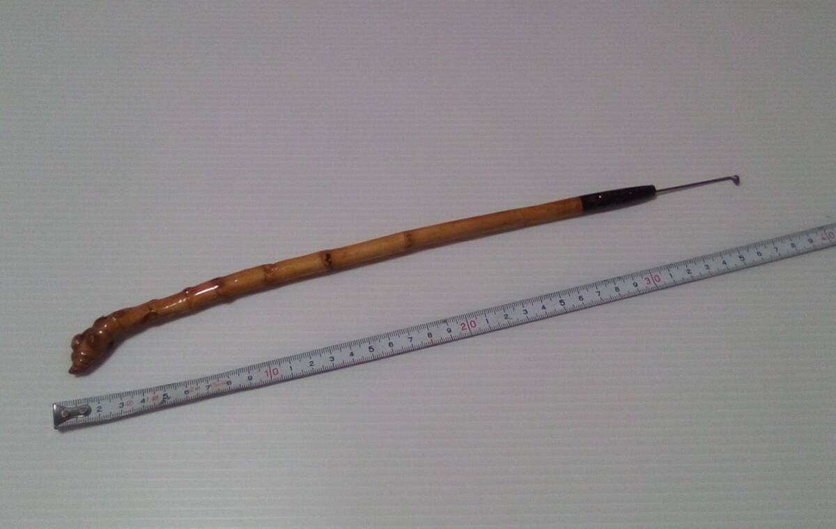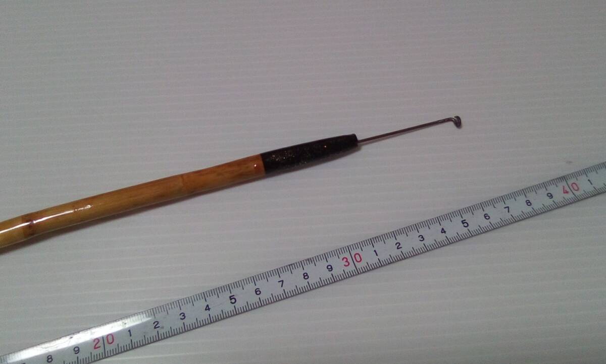 希少な根付き高野竹を使用したハリ外しでございます。先端部分をラメで飾っております。先端金具はマル型でございます。 お気に召して頂きましたらご入札宜しくお願い致します。