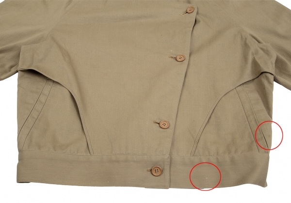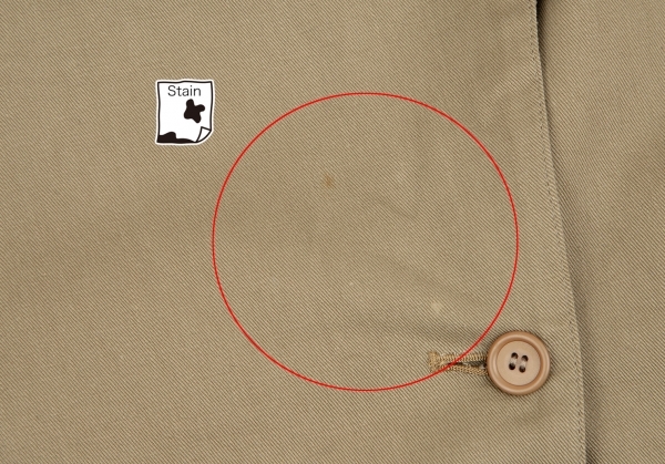 | コンディション | 品質タグがありません。身頃・右肩にシミ、前裾にわずかにダメージがあります(写真参照)その他目立ったシミ、汚れ、ほつれ等なくいい状態です。クリーニング済み |