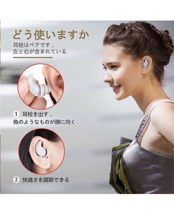【材料およびデザイン】三つソフトフォーム耳栓、睡眠の騒音を遮断するために、非常に柔らかく高級なシリコン素材で作られており、独特なデザイン特徴し、横向きの寝台に最適で、防水設計、長い端が突き出ていなくて、横向きが快適です。