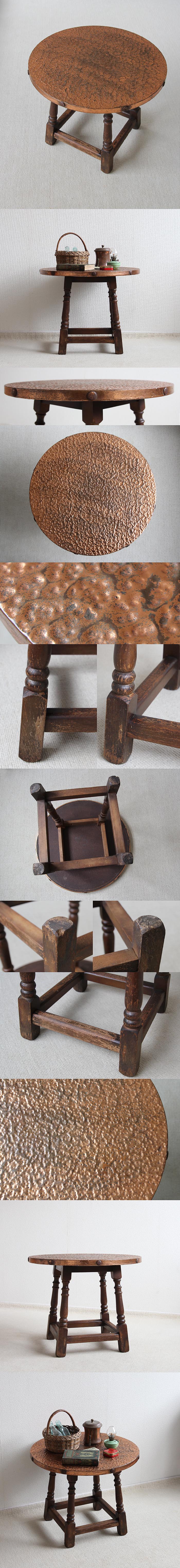 使い込まれた風合いが素敵な銅製天板のラウンドテーブルはいかがですか?店舗ディスプレイにもどうぞ。