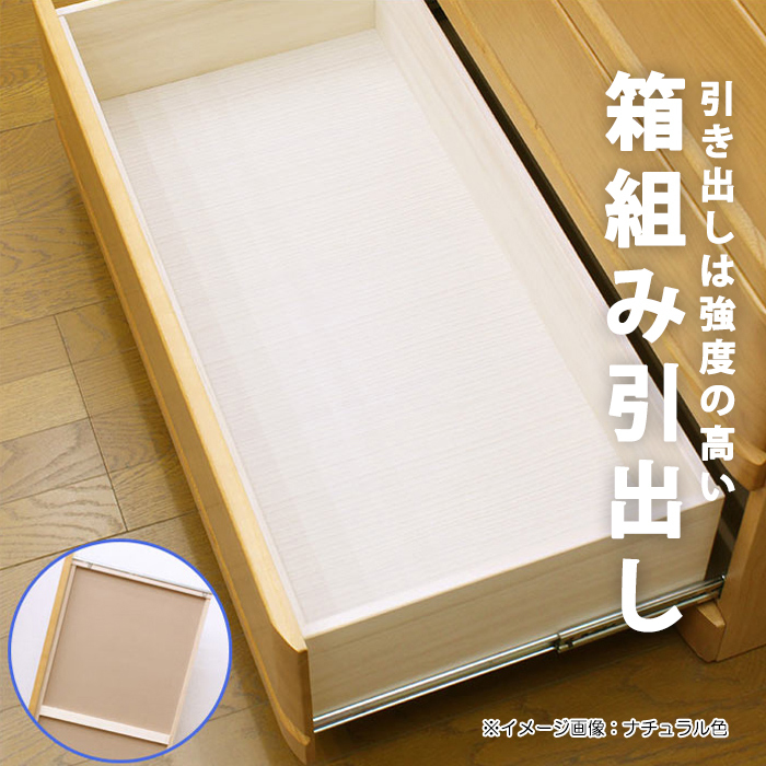 引き出しは強度のある箱組、よく使う最下段引き出しには奥のものまで出し入れしやすいフルオープンスライドレール。