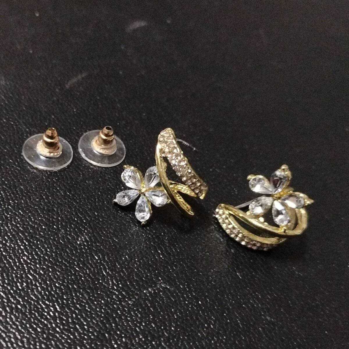新品未使用 ピアス ゴールド 花 フラワー 可愛い レディース 韓国 ラインストーン S925針 キラキラ 綺麗 アレルギー 対策 防止 #D198-2