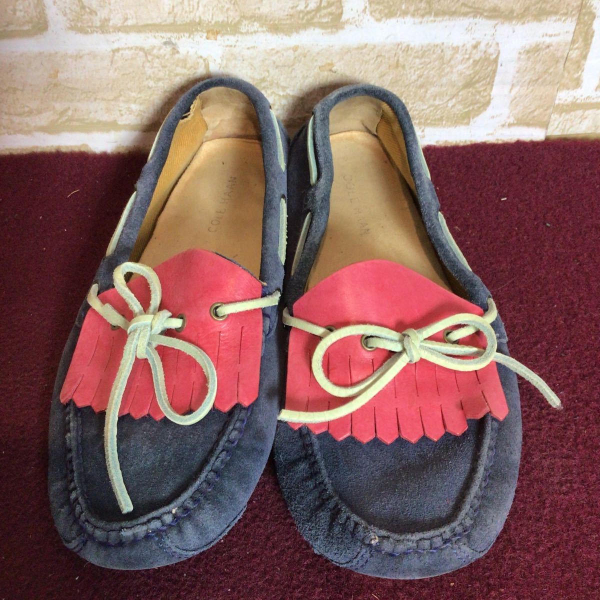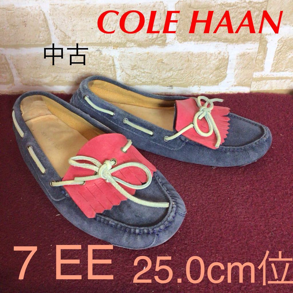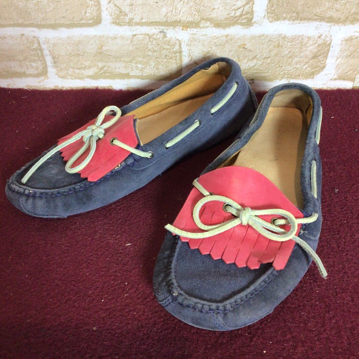 【売り切り!送料無料!】A-352 COLE HAAN!デッキシューズ!ドライビングシューズ!7 25.0cm位!ネイビー!!レッド!おしゃれ!スエード!中古!