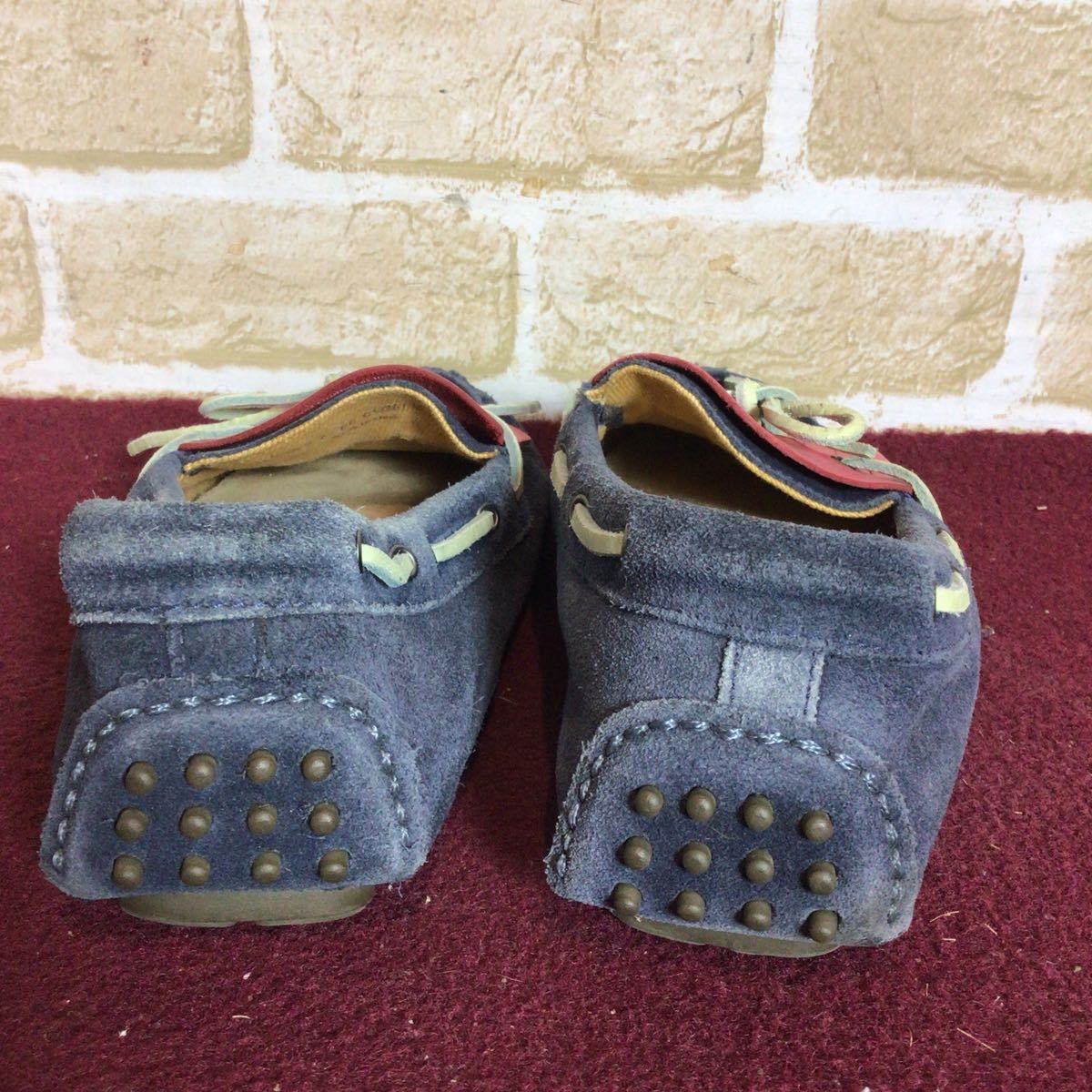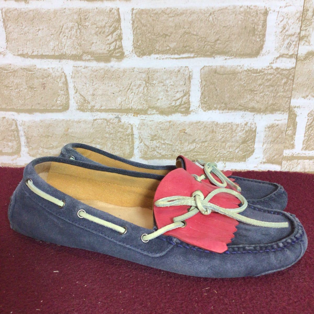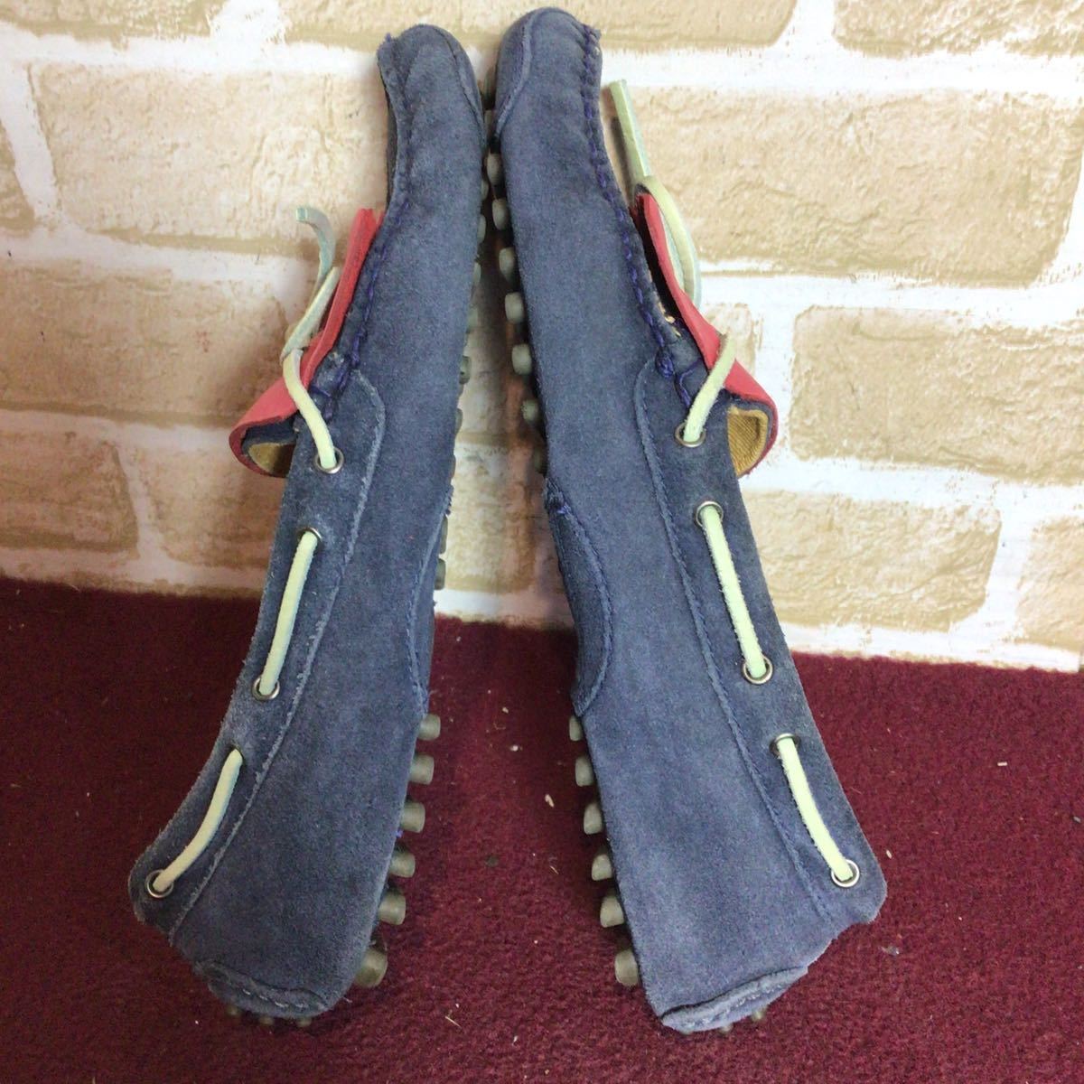 【売り切り!送料無料!】A-352 COLE HAAN!デッキシューズ!ドライビングシューズ!7 25.0cm位!ネイビー!!レッド!おしゃれ!スエード!中古!