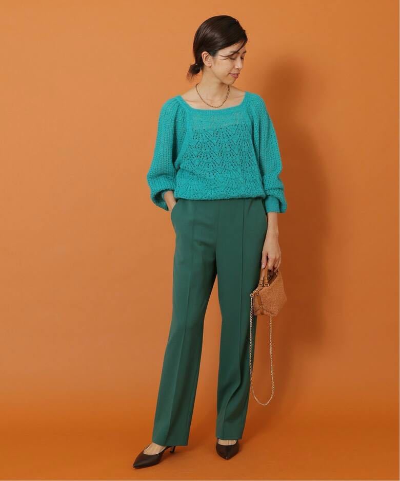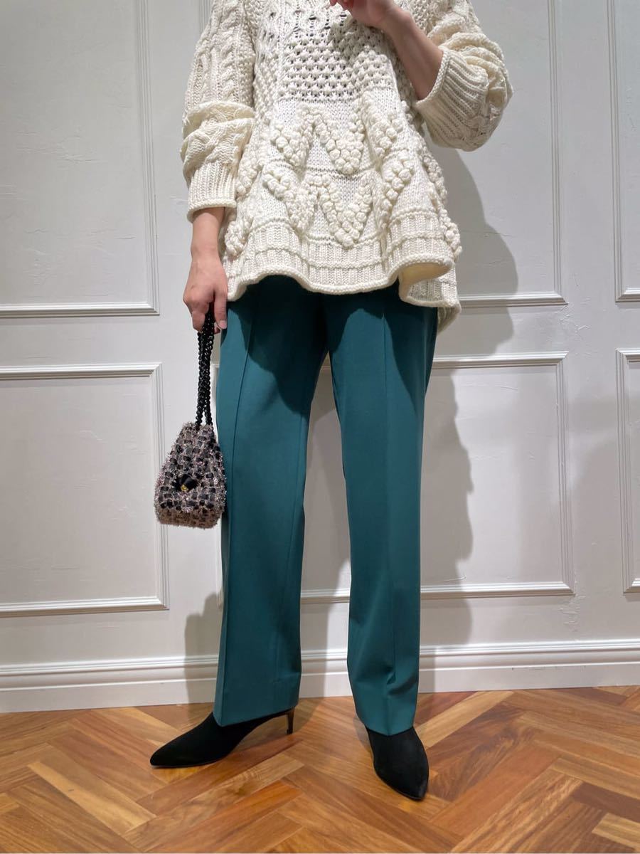 楽してきれいが叶う、LA BOUCLE定番のイージースラックス。キックバックが効いており、カットソーのように穿きやすく皺になりにくい素材です。控えめにピンタックを入れているので、足がすらっと見える効果も期待できそう。イージータイプなので、サイズアップしてゆったり穿いても、ジャストサイズですっきり穿くのもお選びいただけます。