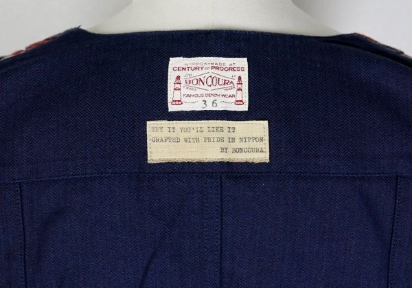 BONCOURA ボンクラ チェック x インディゴヘリンボーン ワーク ジレ ベスト 36 work gilet vest <色> 画像を参考にお願いします <素材> cotton100% <サイズ> 36 <寸法> 肩幅39身幅48.5着丈57(単位:㎝) <商品状態> 少々擦れ、若干の着用感はございますが綺麗なお品です。 <備考> 定価45000円位 ■支払方法 YAHOOかんたん決済で落札価格+送料をお支払いください。 ■発送詳細 佐川急便、送料全国一律900円