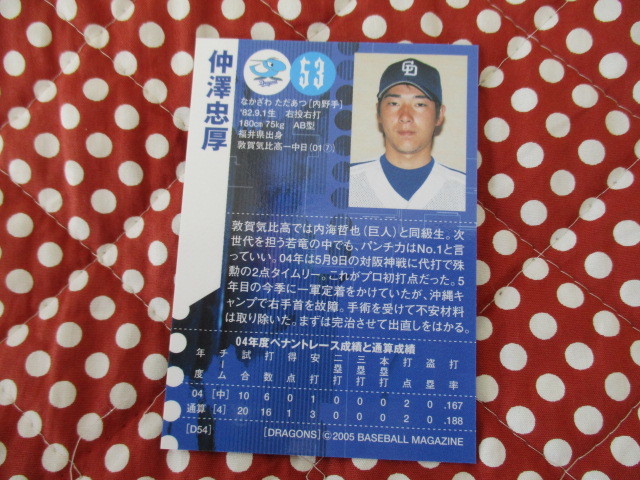 ★BBM 2005★〔D54・仲澤忠厚〕中日ドラゴンズ ベースボールカード トレカ♪