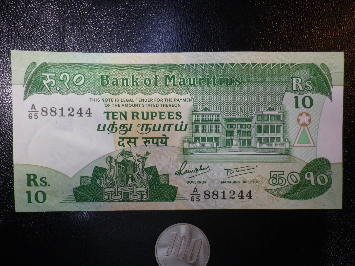 モーリシャス 1985年 10Rupees 極美品++ P-35