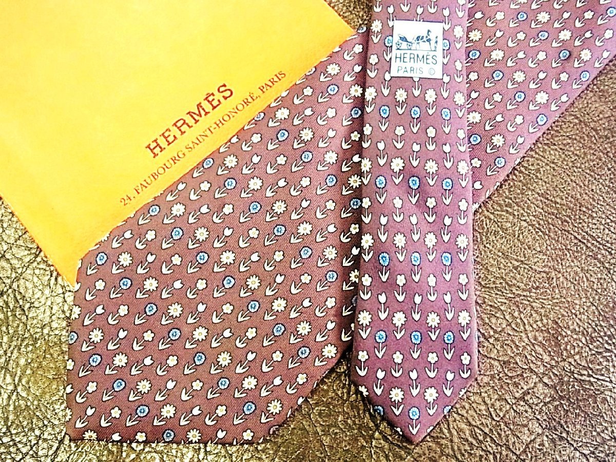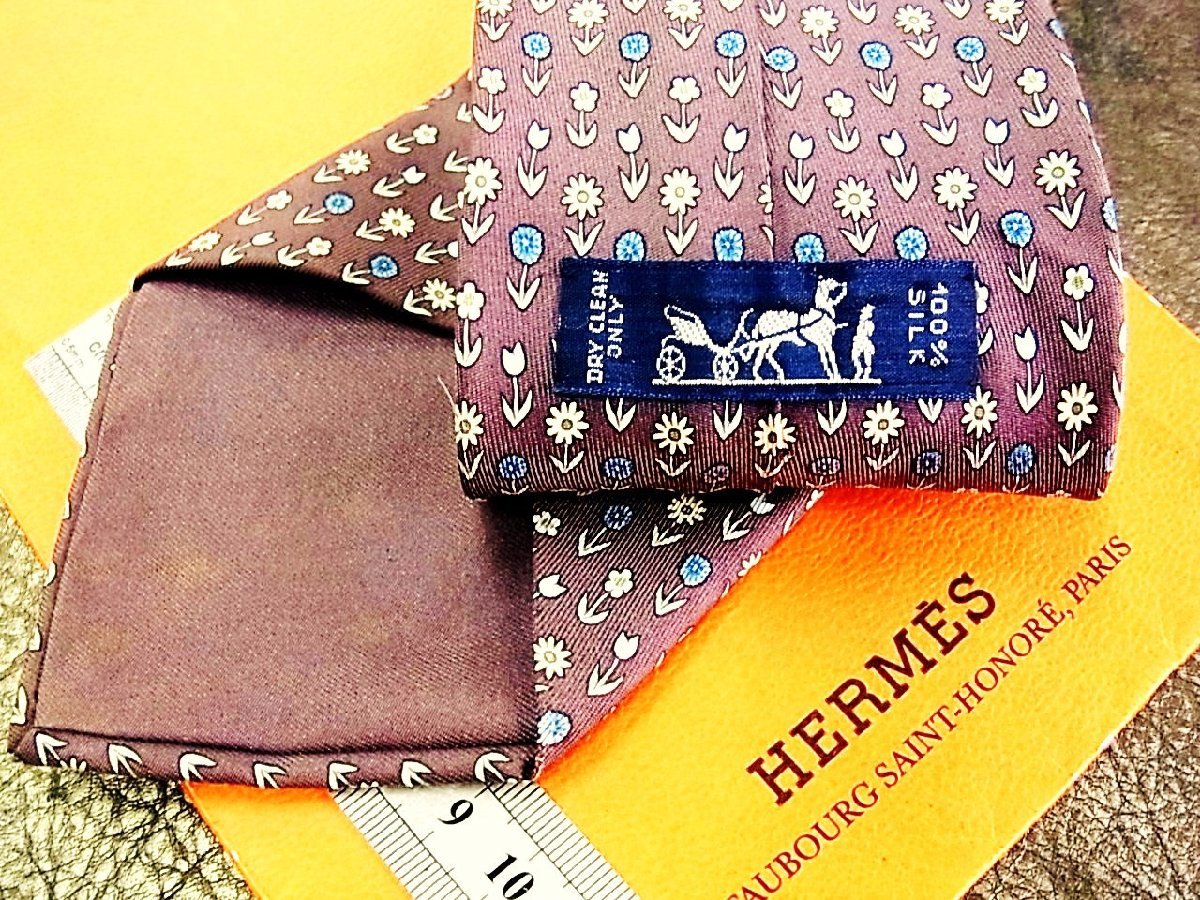 ★並品★4R01929【HERMES】エルメス「花 植物 柄」ネクタイ