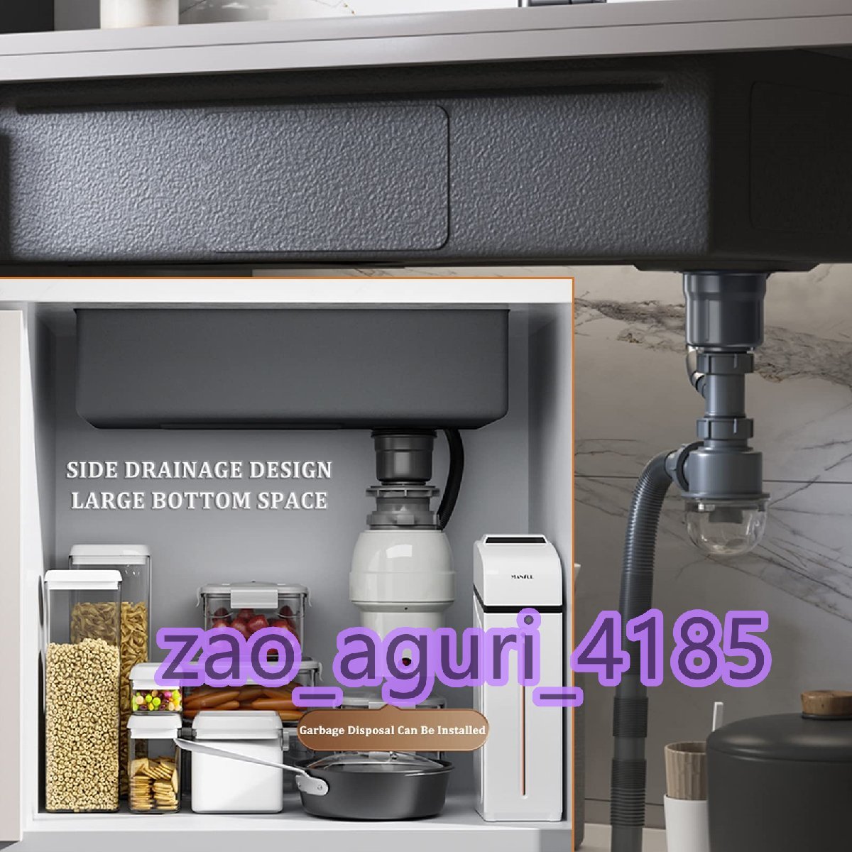 ?【超静音キッチンシンク】当社のキッチンシンクは極厚吸音パッドを採用し、シンクの底と周囲を覆い、食器洗いや生ゴミ処理で発生する騒音を吸収します。結露防止スプレーに使用される保護プライマーで、湿気の蓄積によるキッチン キャビネットの損傷を防ぎます。
