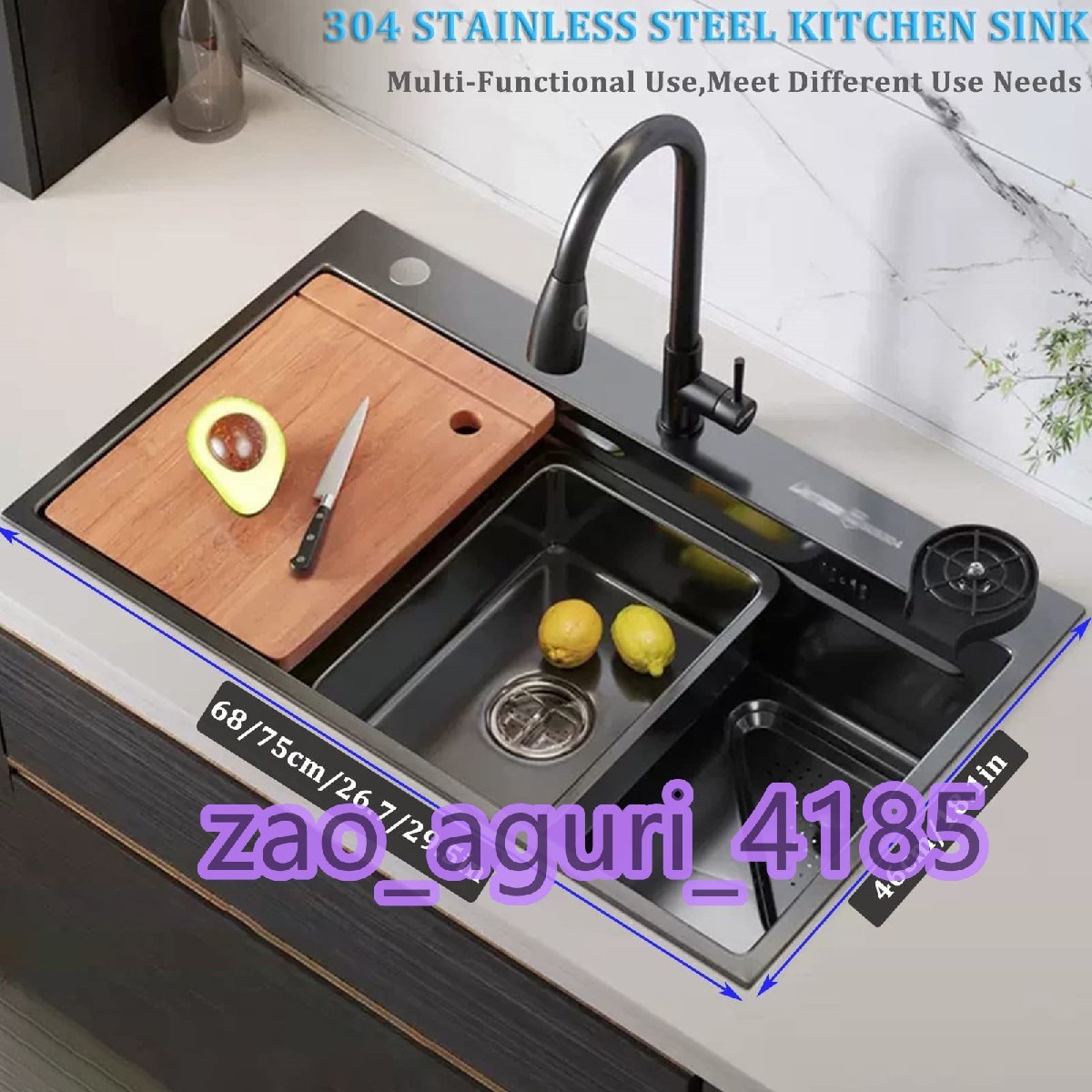 ??【製品アドバンテージ】?ナノコーティングは、耐油性、お手入れが簡単、耐熱性があり、色あせすることはありません?コンパクトなシングルボウルデザインで、小さなスペースに最適なソリューションです?耐熱性、耐擦傷性、耐汚染性、耐へこみ性、他のシンクよりも強力で耐久性があります?メンテナンスを容易にするためにコーナーを曲げる?標準の排水管は、あらゆるごみ処理装置に適しています??【注】流し台を正しく設置するために、事前にベースキャビネットの開口部のサイズを測定してください。??【商品仕様】-素材: 304 ステンレス鋼カラー:ブラック-サイズ:68x46x24.5cm/26.7x18.1x9.6in75x46x24.5cm/29.5x18.1x9.6in-ボウルの深さ: 24.5cm/9.6in-取り付けタイプ: ドロップインまたはアンダーマウント??【暖かいリマインダーにご注意ください】?販売リストについて---------私たちは台所の流し台のみを販売しており、他の写真の内容は含まれていません。?色について---------カメラ、撮影灯、パソコンの設定により、実際の色が写真と異なる場合があります。実際の製品を参照してくださいが、これは品質の問題ではありません。?サイズについて---------手動測定データには若干のずれがありますのでご了承ください。 1?2cmのずれがある場合がありますので、実際の商品をご参照ください。ご理解ください。?商品について---------購入前にサイズと色をご確認ください。似たような人気商品がたくさんありますので、クリックして当店に足を運んでみてください。あなたのスタイルやニーズに合う商品は他にもたくさんあります。?サービスについて--------ご購入にご満足いただければ幸いです。カスタマーサービスについてご不明な点がございましたら、お気軽にお問い合わせください。よろしくお願いいたします。