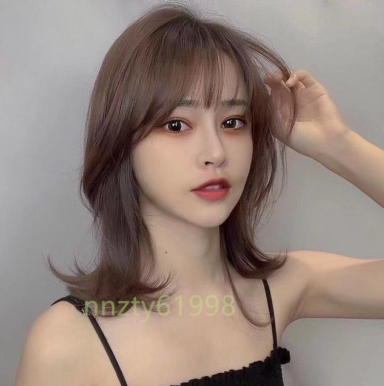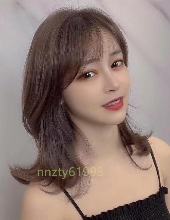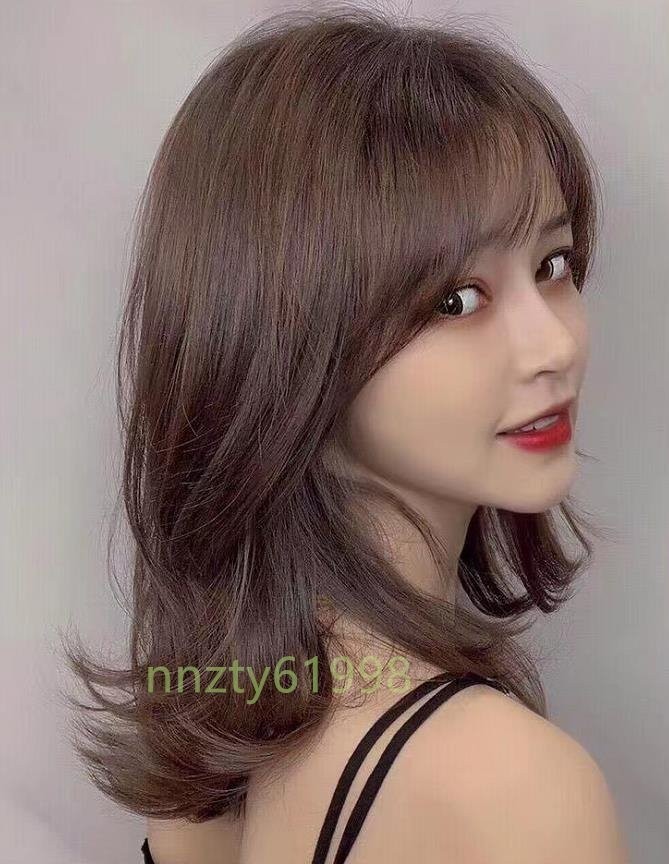 高品質★フルウィッグ 人毛 ウィッグ かつら セミロングストレート 髪型