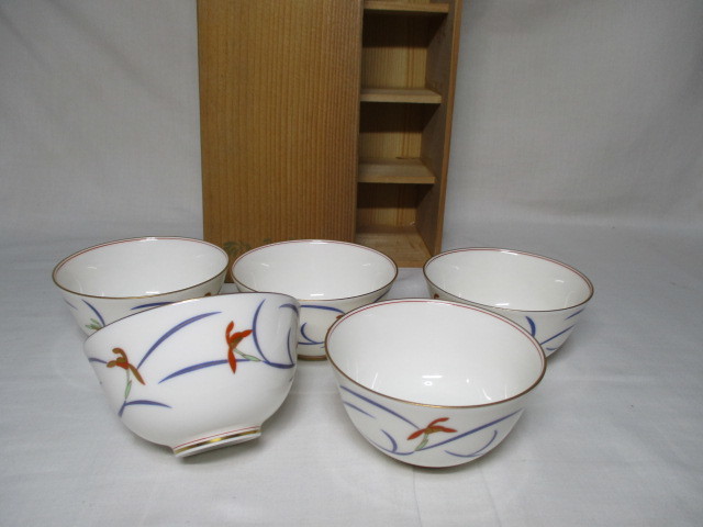 香蘭社  ブルー 蘭 湯呑揃 5個