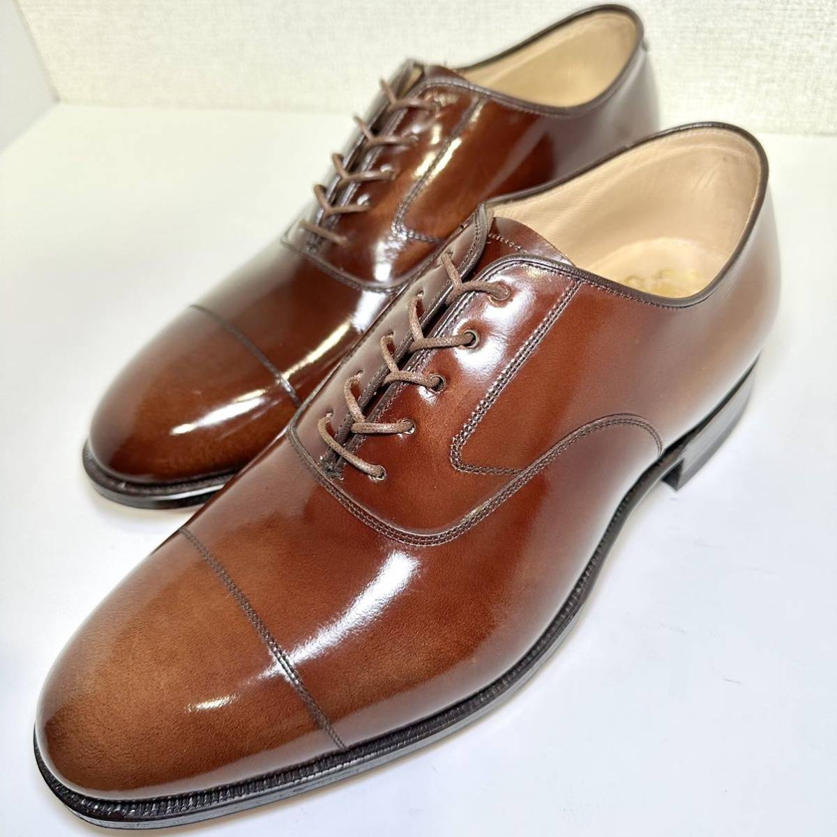 即決 /未使用/希少 /Johnston&Murphy ARISTOCRAFT / UK6.5 / 25.0cm/ジョンストンアンドマーフィー/アリストクラフト/ストレートチップシューズ/ブラウン/革靴/ビンテージ風