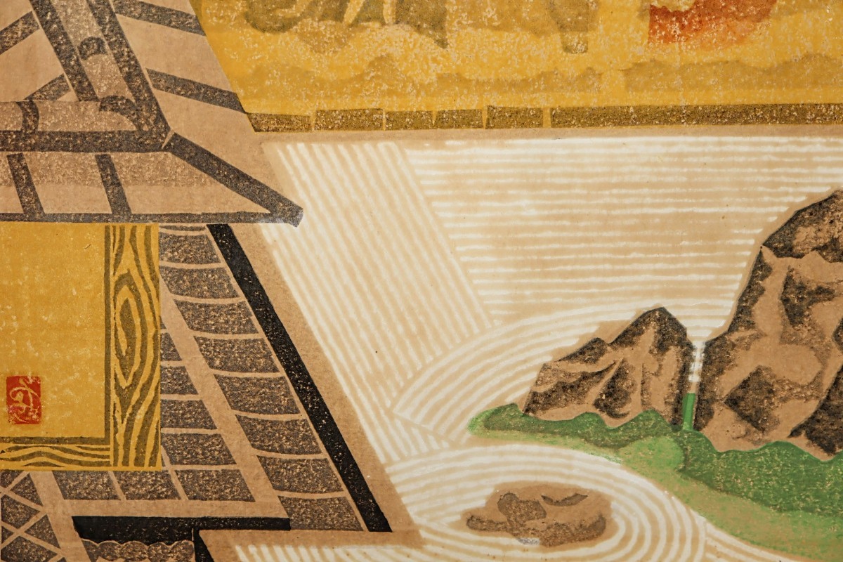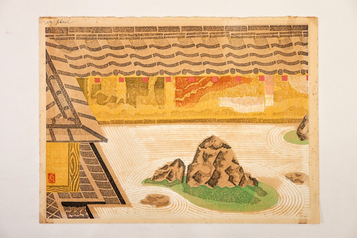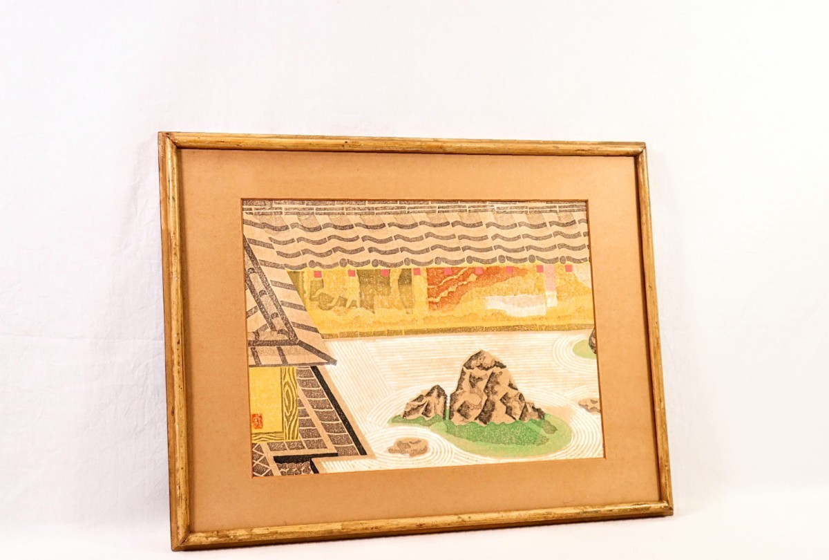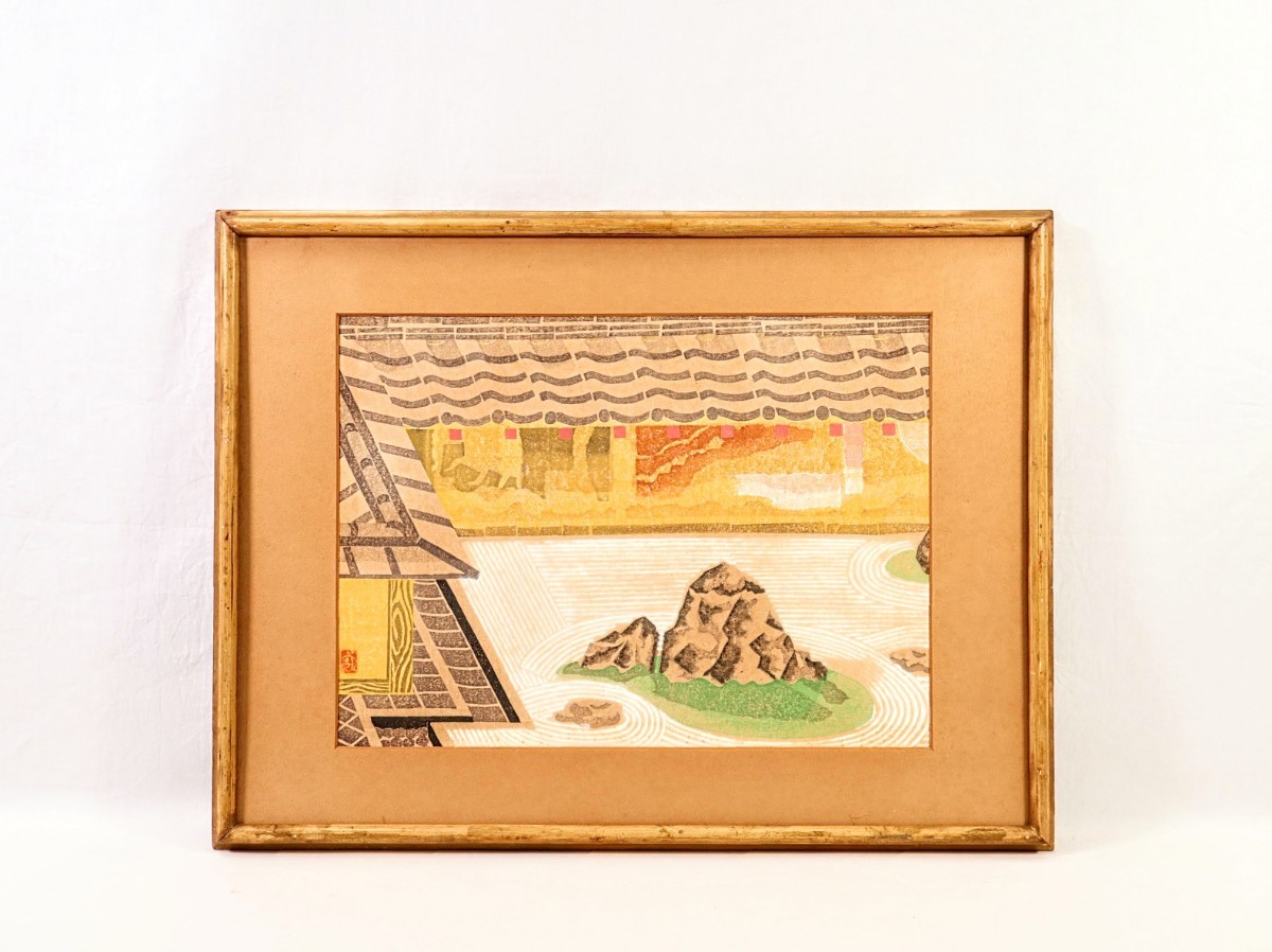 真作 亀井藤兵衛 1956年木版画「龍安寺」画寸 46cm×34cm 和歌山県出身 青竜社社人 川端竜子に私淑 枯山水の代表格の石庭 亀井玄兵衛 8421