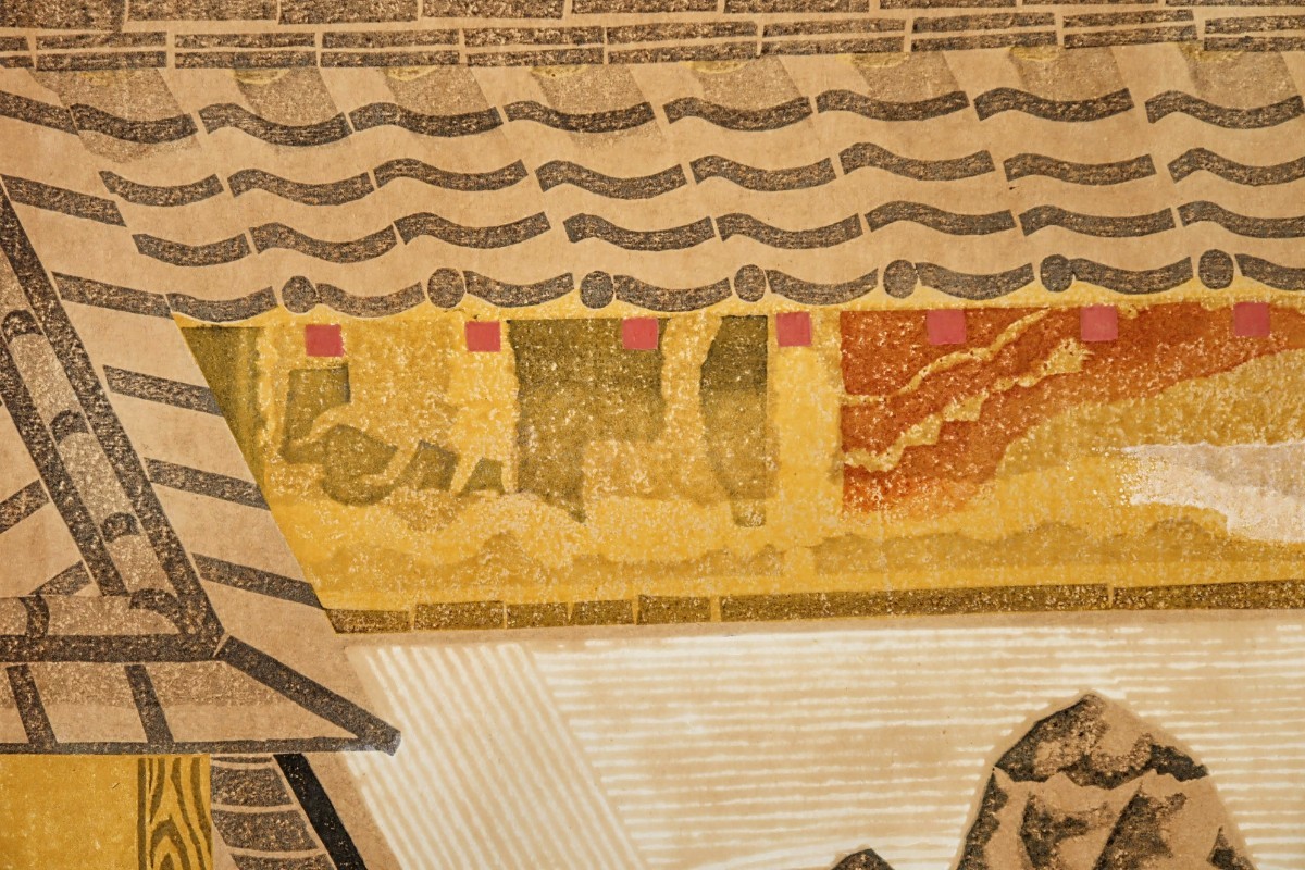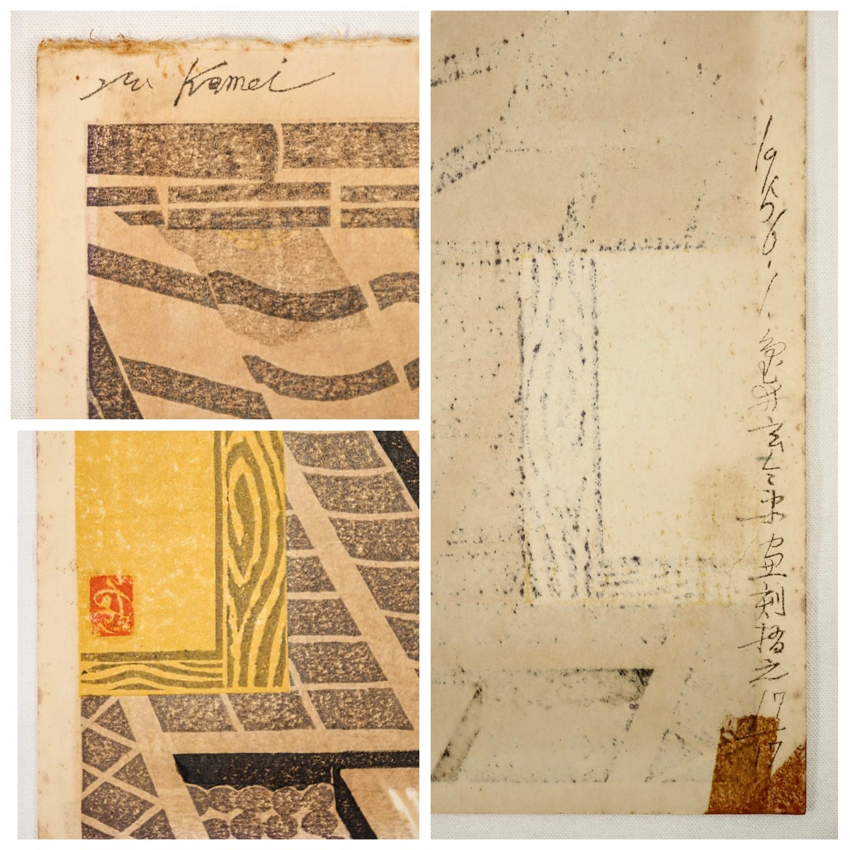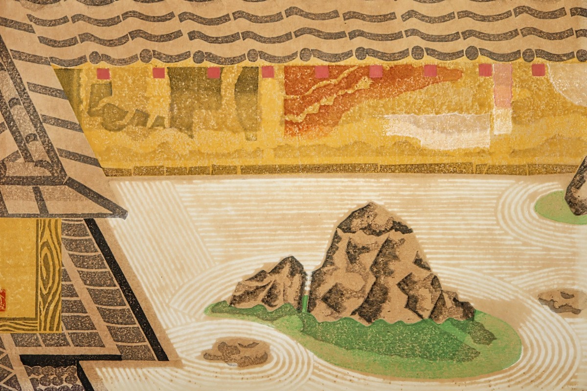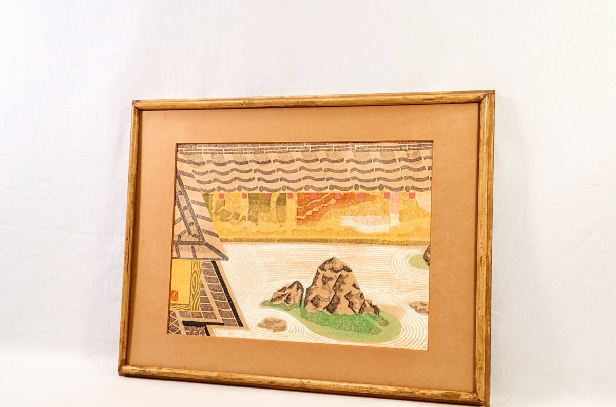 真作 亀井藤兵衛 1956年木版画「龍安寺」画寸 46cm×34cm 和歌山県出身 青竜社社人 川端竜子に私淑 枯山水の代表格の石庭 亀井玄兵衛 8421