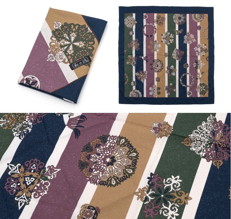 日本製 大判の風呂敷 日本の伝統美を受け継いできた「染」の温もり。 その豊かな染の技法と、古の人より伝承された飽きのこない図柄は、当世流行りの”小粋な和の世界”を充分楽しませてくれるでしょう。 この「多包布」はそんな風情溢れる布の味わいと現代的なセンスを持ち合わせた多目的にご利用頂ける”小粋な一枚布”でございます。 |