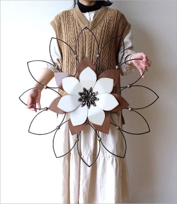 | アイアンとウッドの 異素材の組み合わせがオシャレな 直径約75cmの 大きなウォールデコレーション スリムなラインのアイアンに フラットな花びらのピースを合わせ ウッドビーズのポイントが可愛いデザイン 奥行と迫力が感じられるデザインは 絵画とはまた違った楽しみ方が出来そうで 大輪の花が壁の印象を 一気に華やかにしてくれそうです 商品名 : アイアンの壁飾り ビッグフラワー A 商品番号 : spc1037 全体サイズ(cm) : 幅74.9×奥行3.8×高さ74.9 材質 : アイアン 天然木 重量 : 2kg 生産国 : 中国 ※取り付け用のネジは付属していません ※シャビーペイントを施したレトロ風仕上げです ※ディスプレイによる色の違いはご了承下さい |