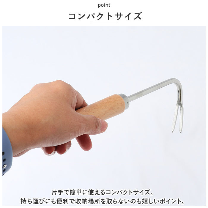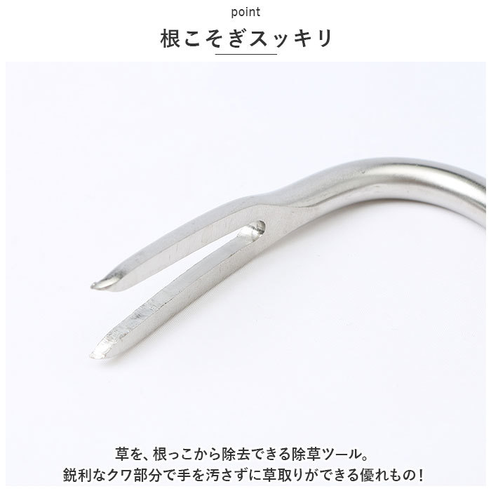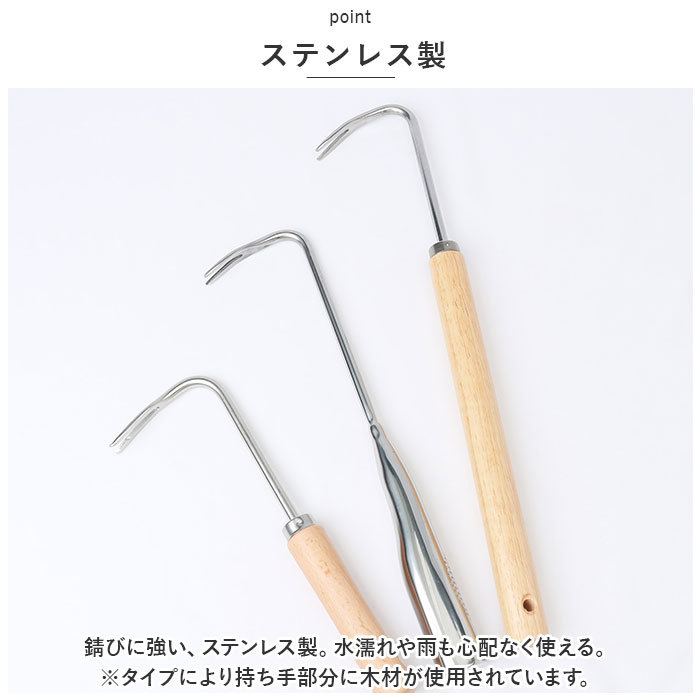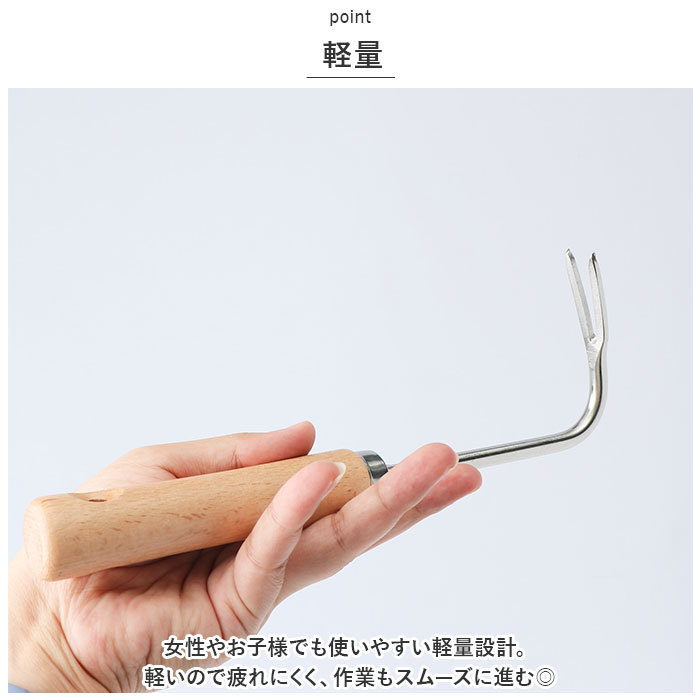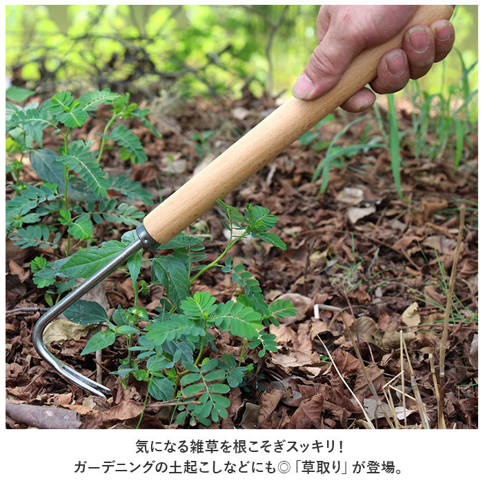 | 商品説明 | ・・気になる雑草を根こそぎスッキリ!ガーデニングの土起こしなどにも◎「草取り」が登場。 ・【根こそぎスッキリ】 ・草を、根っこから除去できる除草ツール。鋭利なクワ部分で手を汚さずに草取りができる優れもの! ・【土起こしにも】 ・ガーデニングや家庭菜園などの土起こしにも使える◎お家にひとつ置いておきたいアイテム。 ・【軽量】 ・女性やお子様でも使いやすい軽量設計。軽いので疲れにくく、作業もスムーズに進む◎ ・【コンパクトサイズ】 ・片手で簡単に使えるコンパクトサイズ。持ち運びにも便利で収納場所を取らないのも嬉しいポイント。 ・【シンプル】 ・シンプルなデザインで、玄関やお庭に置いても様になる☆ガーデニングアイテムにこだわる方にオススメ。 ・【ステンレス製】 ・錆びに強い、ステンレス製。水濡れや雨も心配なく使える。(※タイプにより持ち手部分に木材が使用されています。) |