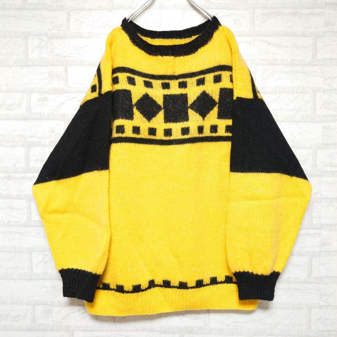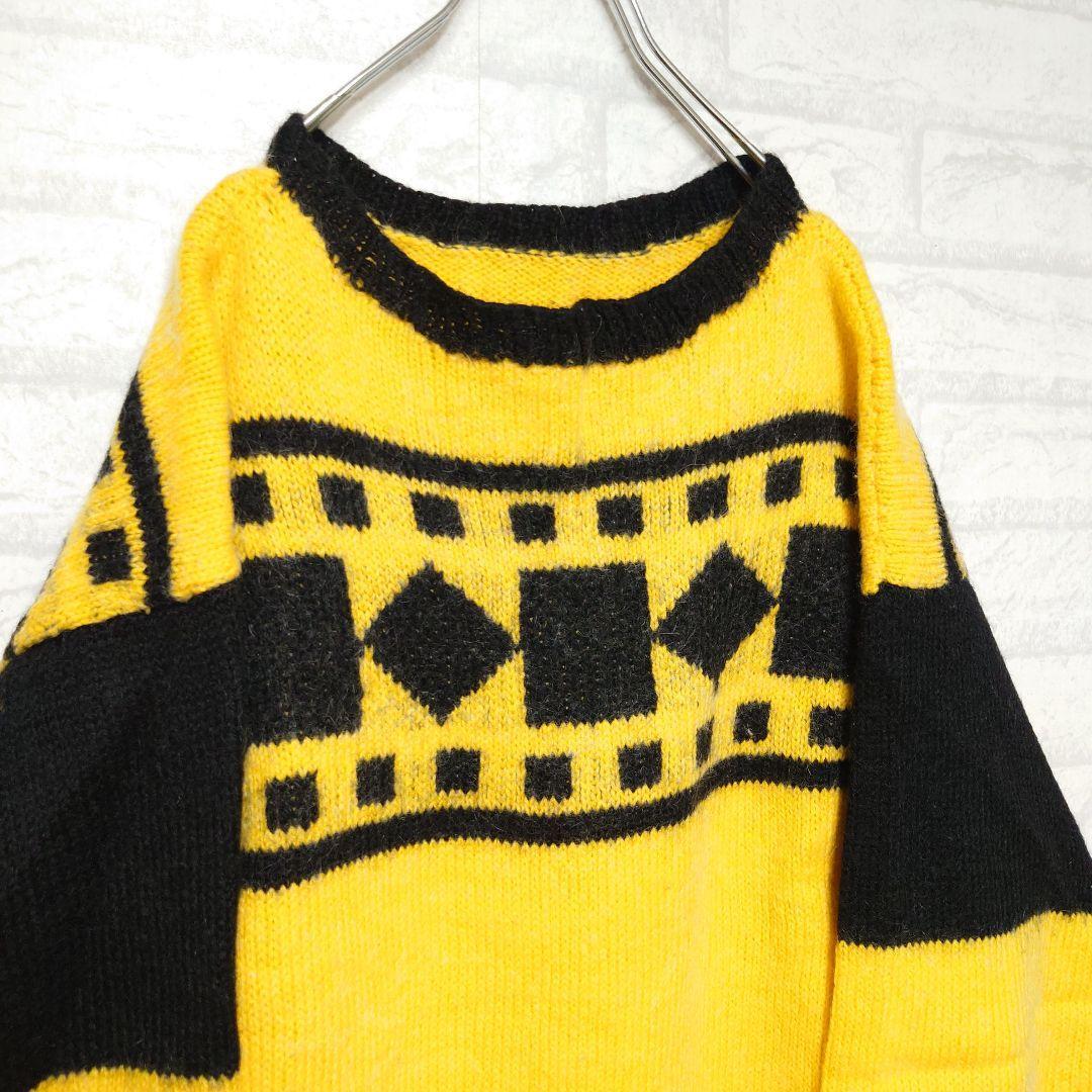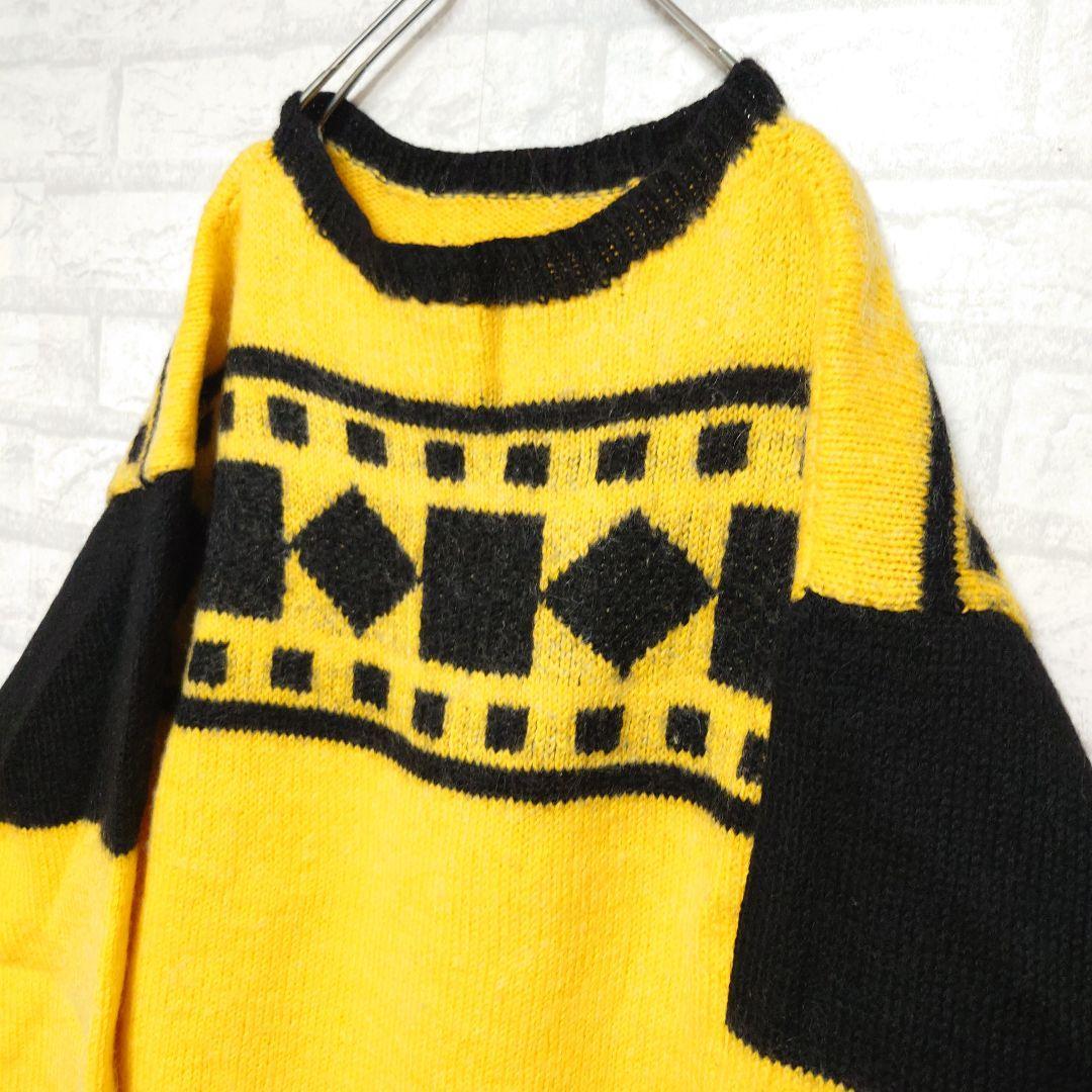 《ヨーロッパ古着》総柄デザインニット 幾何学模様 ウールセーター