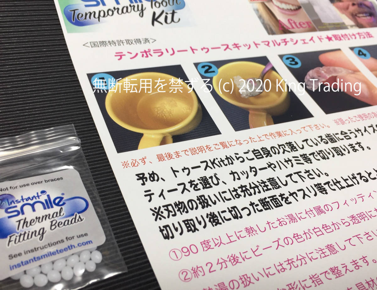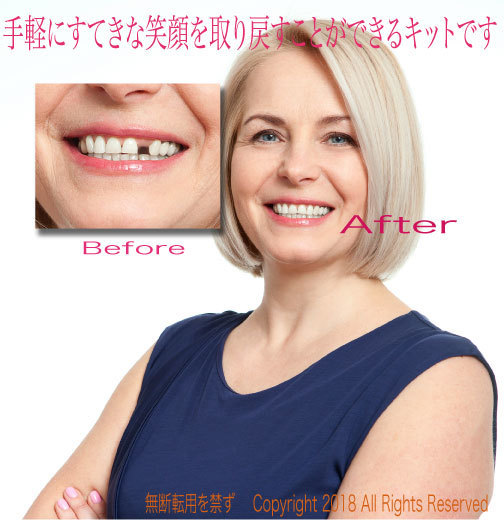 また、”テンポラリートゥースキット、テンポラリートゥース”は商標登録済の商品ですのでこの商品名を表示して販売している者は商標権侵害として 『10年以下の懲役もしくは1000万円以下の罰金、またはその両方を科せられる(商標法78条)。