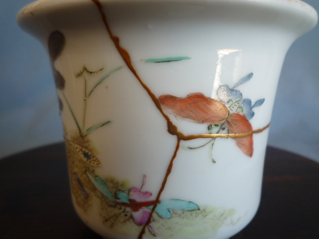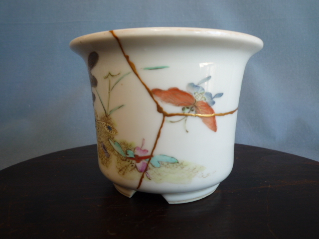 盆栽鉢 小品 小品盆栽 金継 金直し 磁器 直し有 繊細画 中国鉢