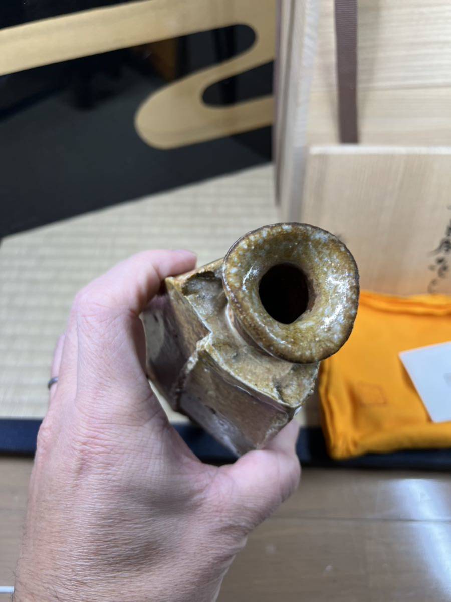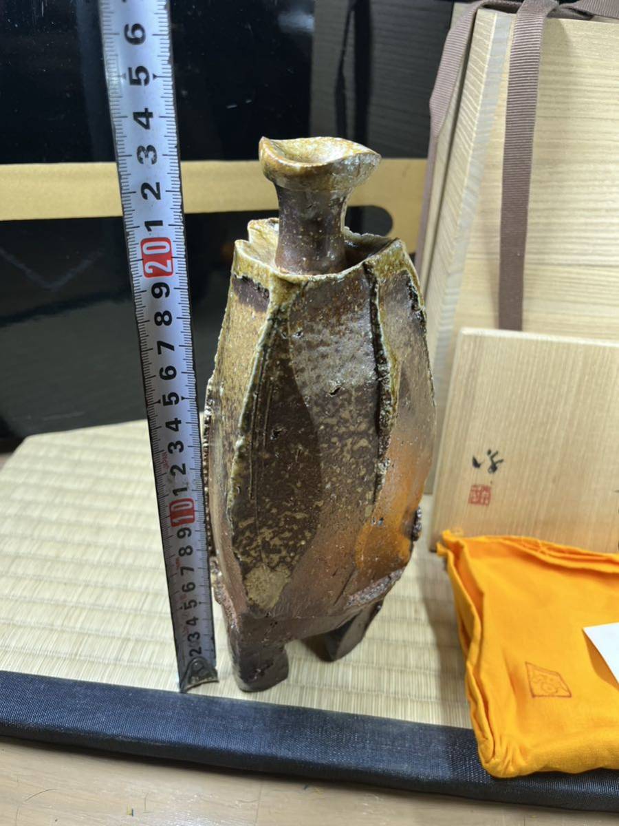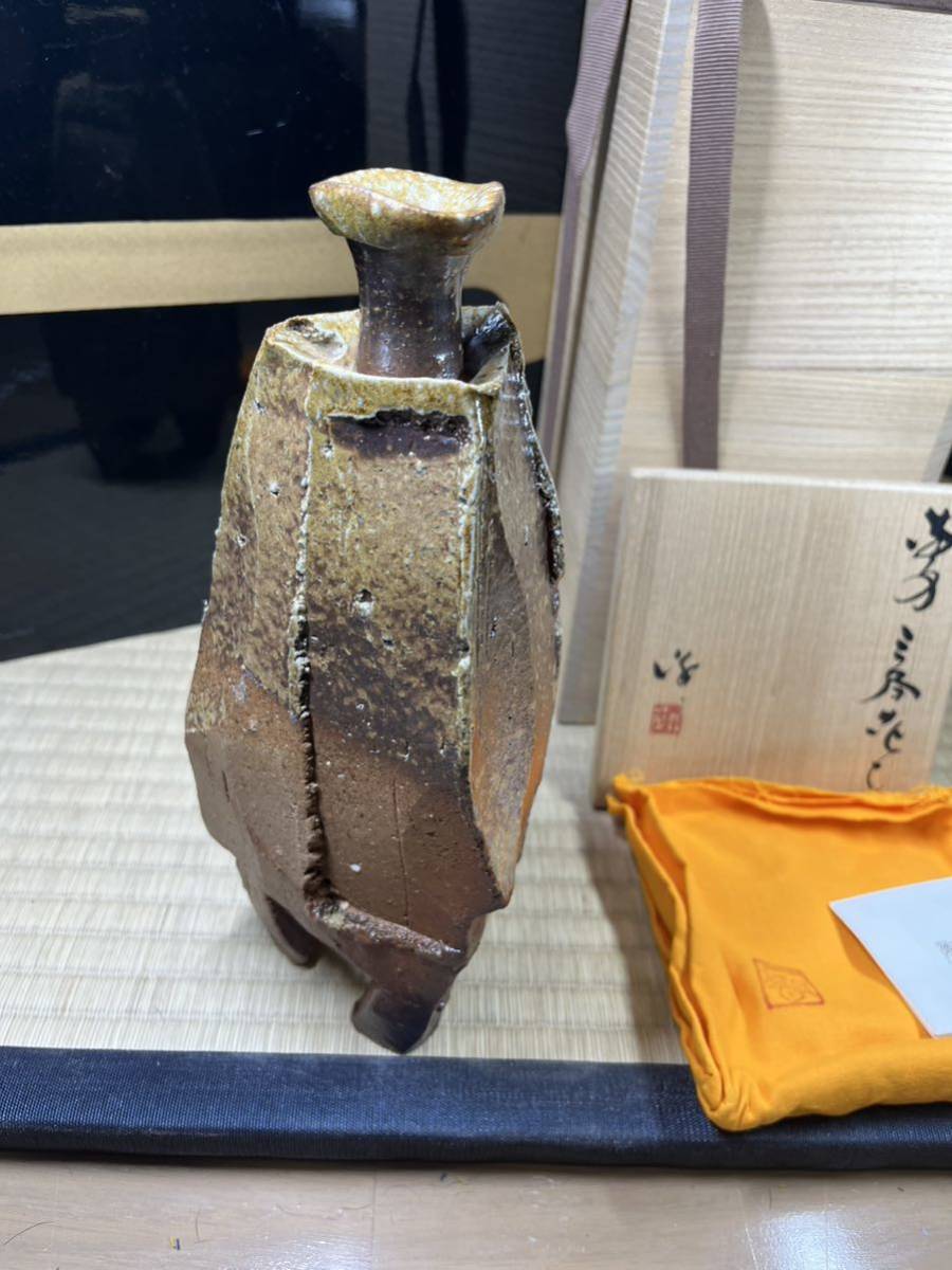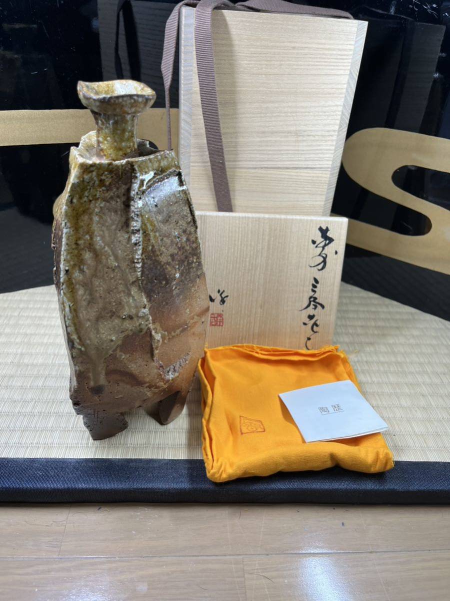隠崎隆一 備前 大徳利 三脚 花入 岡山県無形文化財 共箱 共布 栞 酒器 師 人間国宝 伊勢崎淳  備前焼 オブジェ作家 一輪挿し