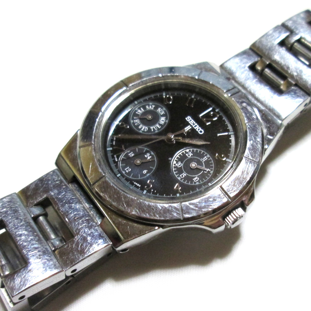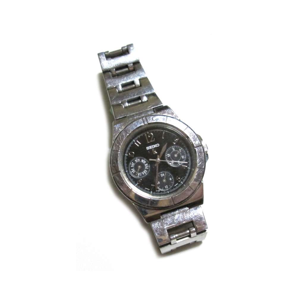 SEIKO LUKIA のシルバーデザインクオーツウォッチです。人気のクロノグラフデザインです。時差もなく完動品 電池交換済み