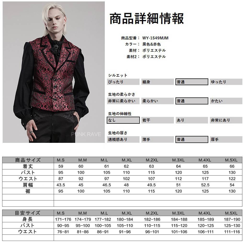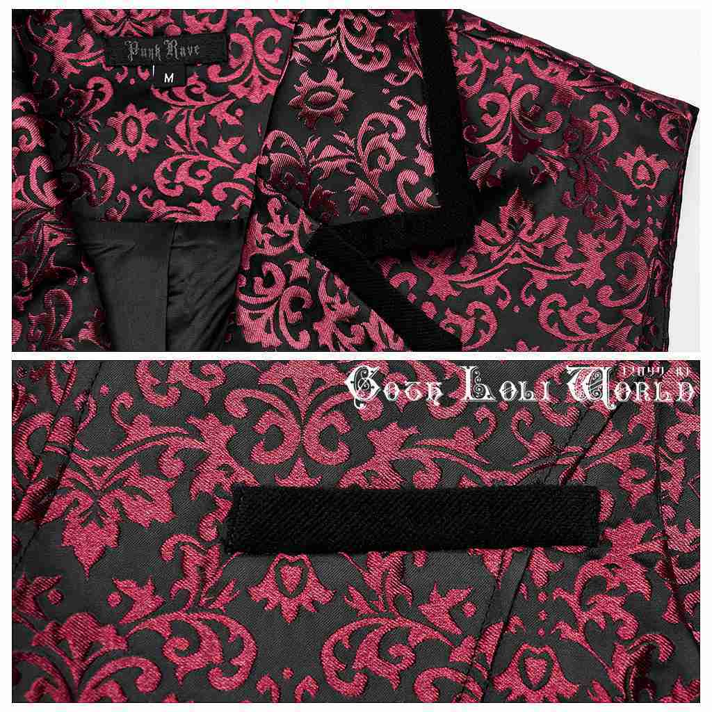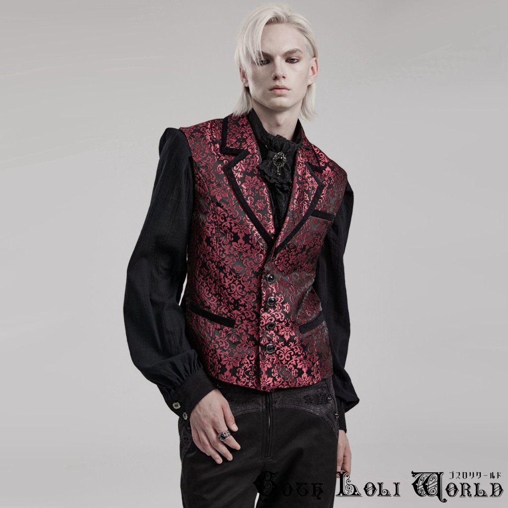 WY-1549MJM-BK-RD-L ベリードラペルアラベスクウエストコート ベスト レッド ゴスロリワールド ゴシック パンク ロック ビジュアル系 V系