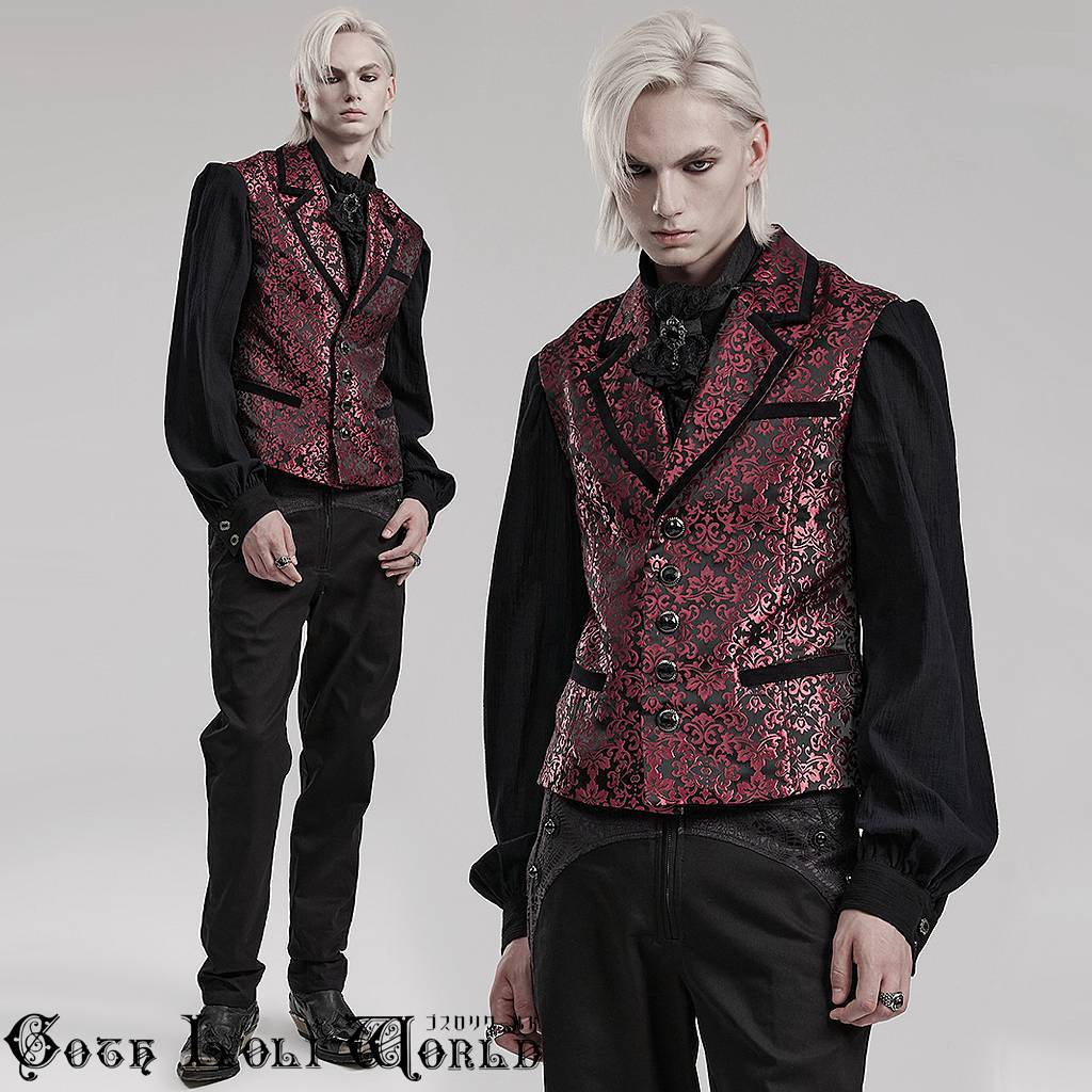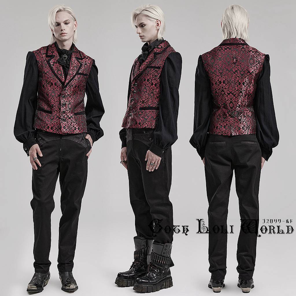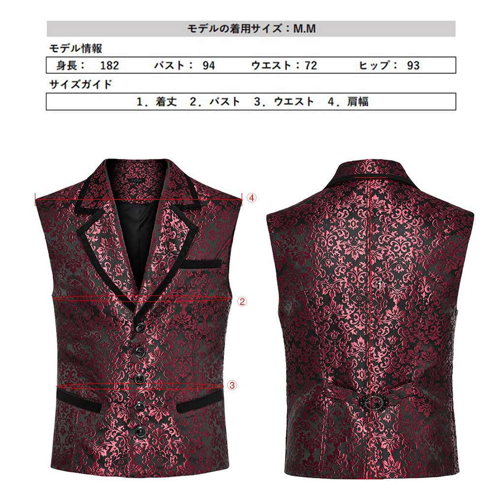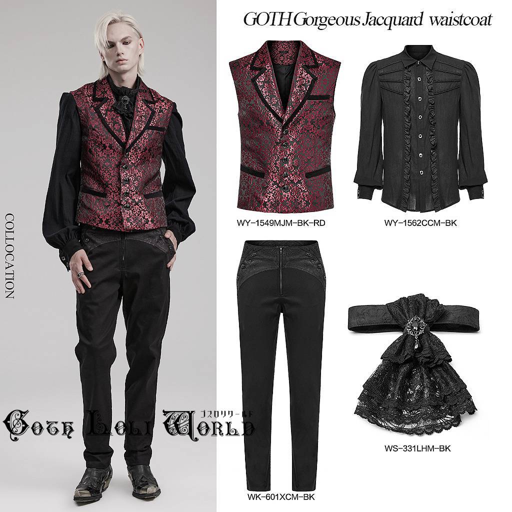 WY-1549MJM-BK-RD-L ベリードラペルアラベスクウエストコート ベスト レッド ゴスロリワールド ゴシック パンク ロック ビジュアル系 V系