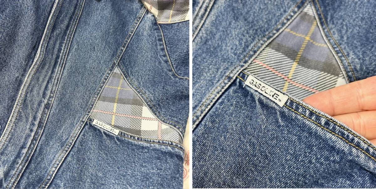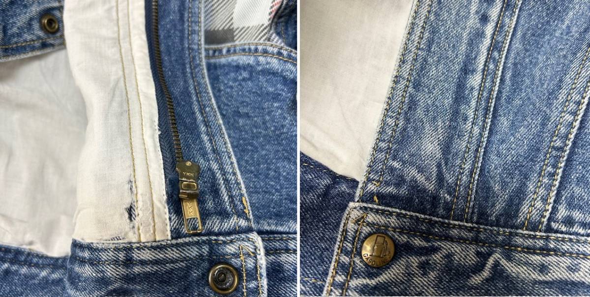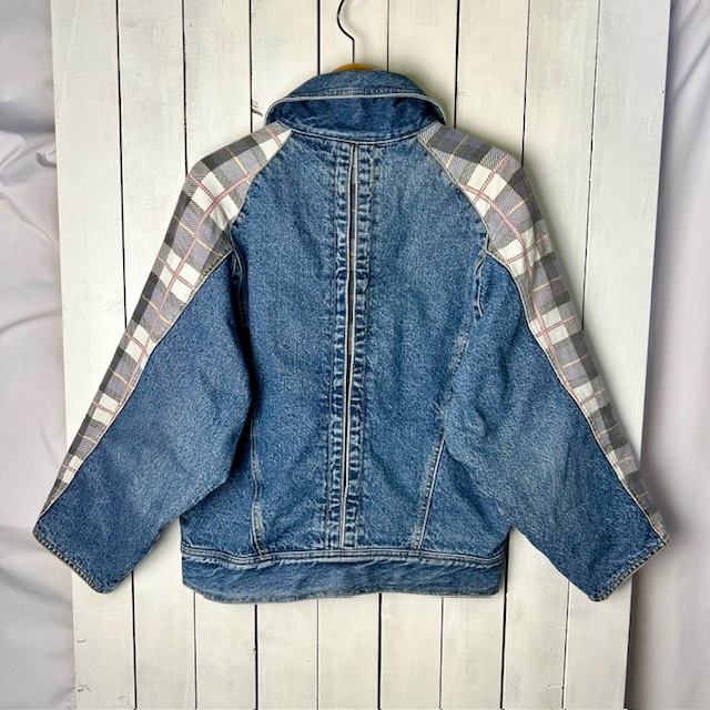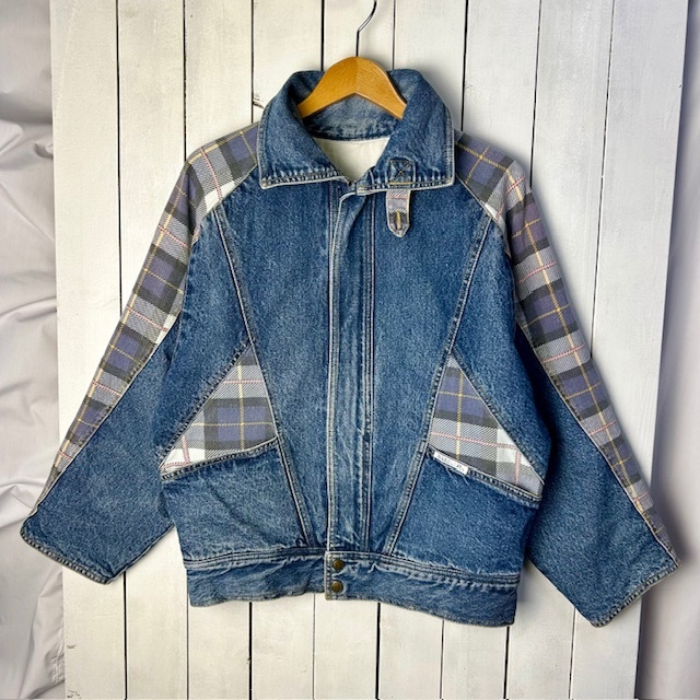 USA古着 80s チェック切替え チンスト付 ジップデニムジャケット L程度 オールド ヴィンテージ アメリカ古着 デニムブルゾン  gasoline ●63