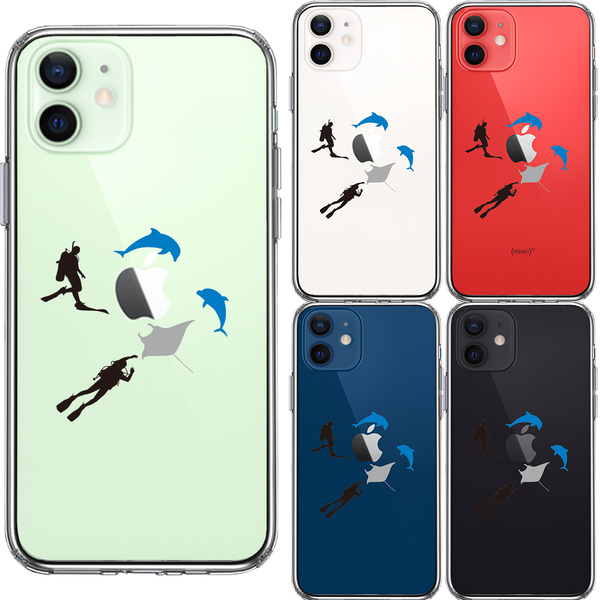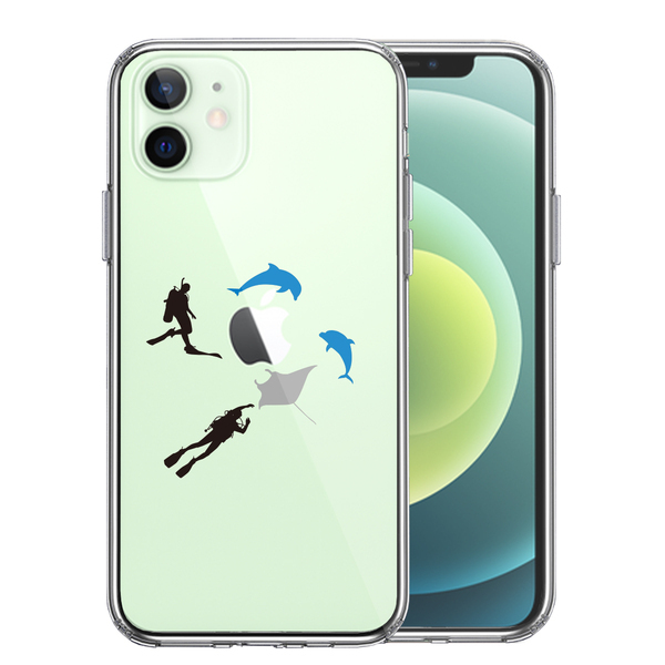 iPhone12mini ケース クリア スキューバダイビング マンタ スマホケース 側面ソフト 背面ハード ハイブリッド