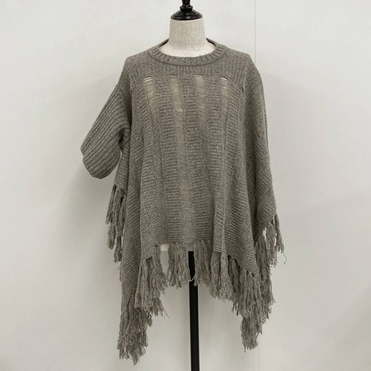 コレクション UNDERCOVER ニット フリンジ ポンチョ グレー ベージュ
