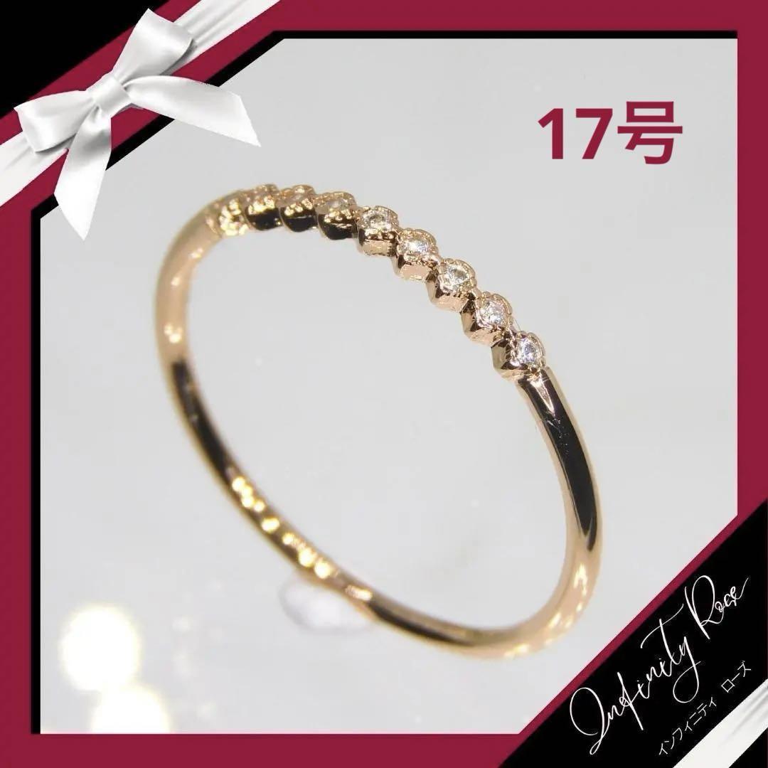 (R027P)17号 ピンクゴールド極細の可憐で清楚なまん丸リング 爪留め仕様