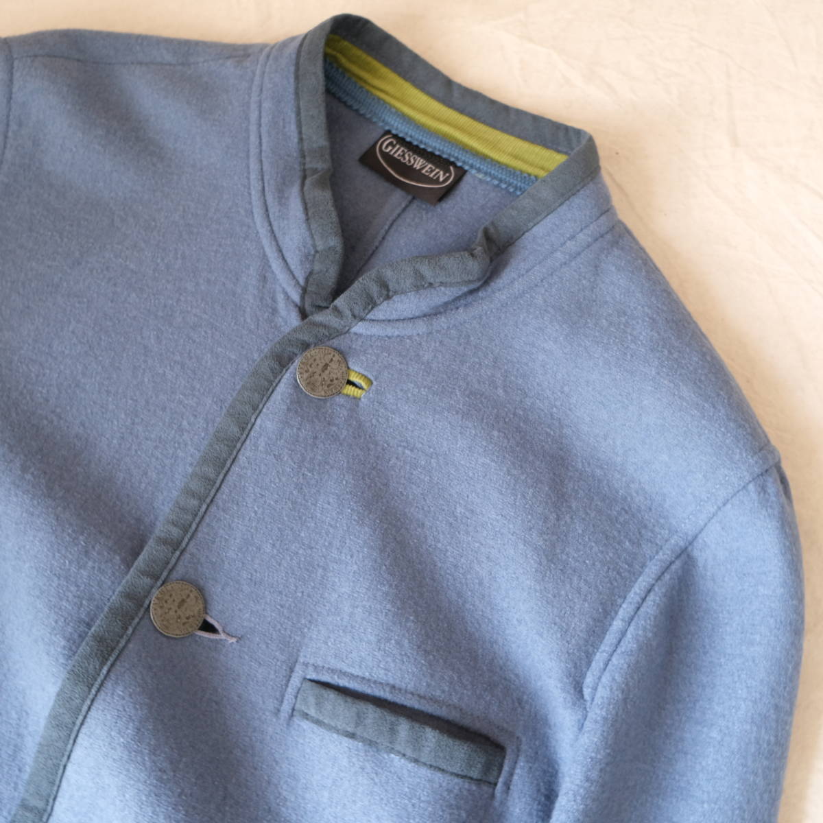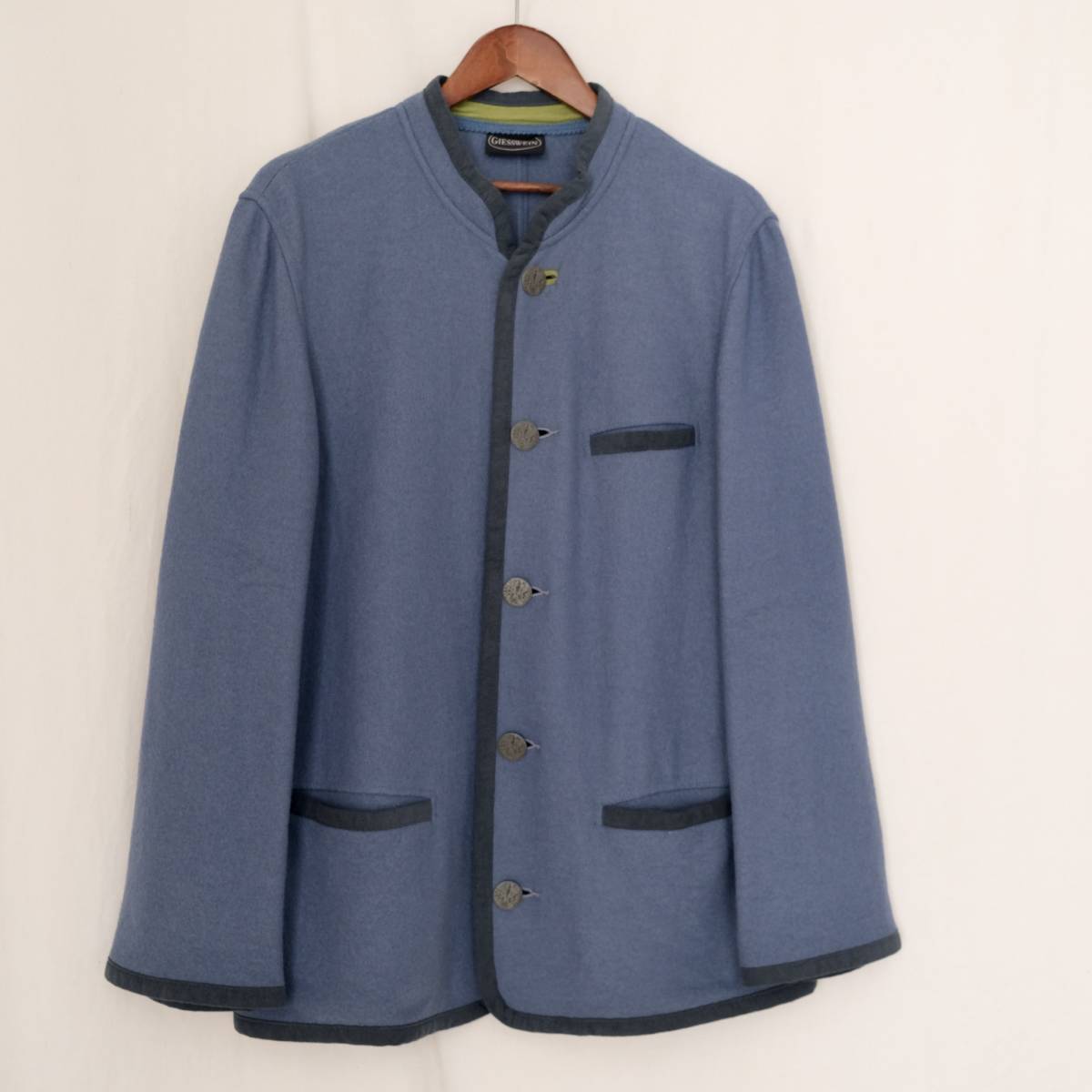 【 GIESSWEIN 】ボイルドウール スタンドカラー チロリアン パイピング ジャケット / ブルー水色系 / 50 / ヨーロッパ チロル オーストリア