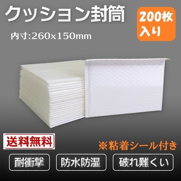【送料無料】緩衝材クッション封筒 発送梱包用 不透明材・耐水★粘着シール付き 作業効率UP★内寸260x150mm 包装梱包材 200枚入り