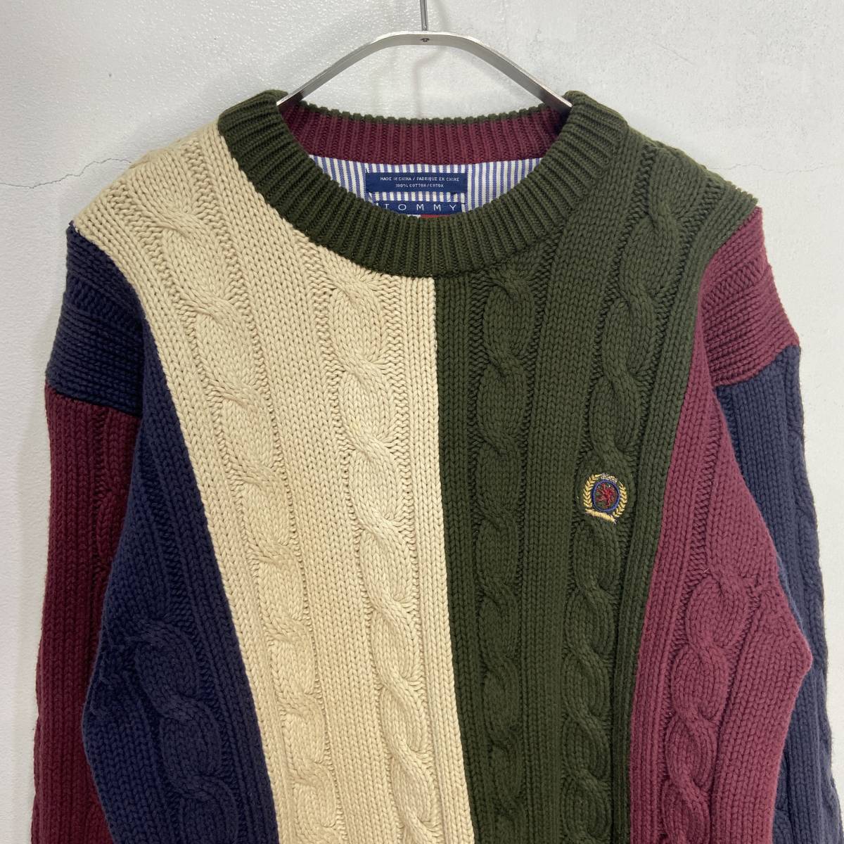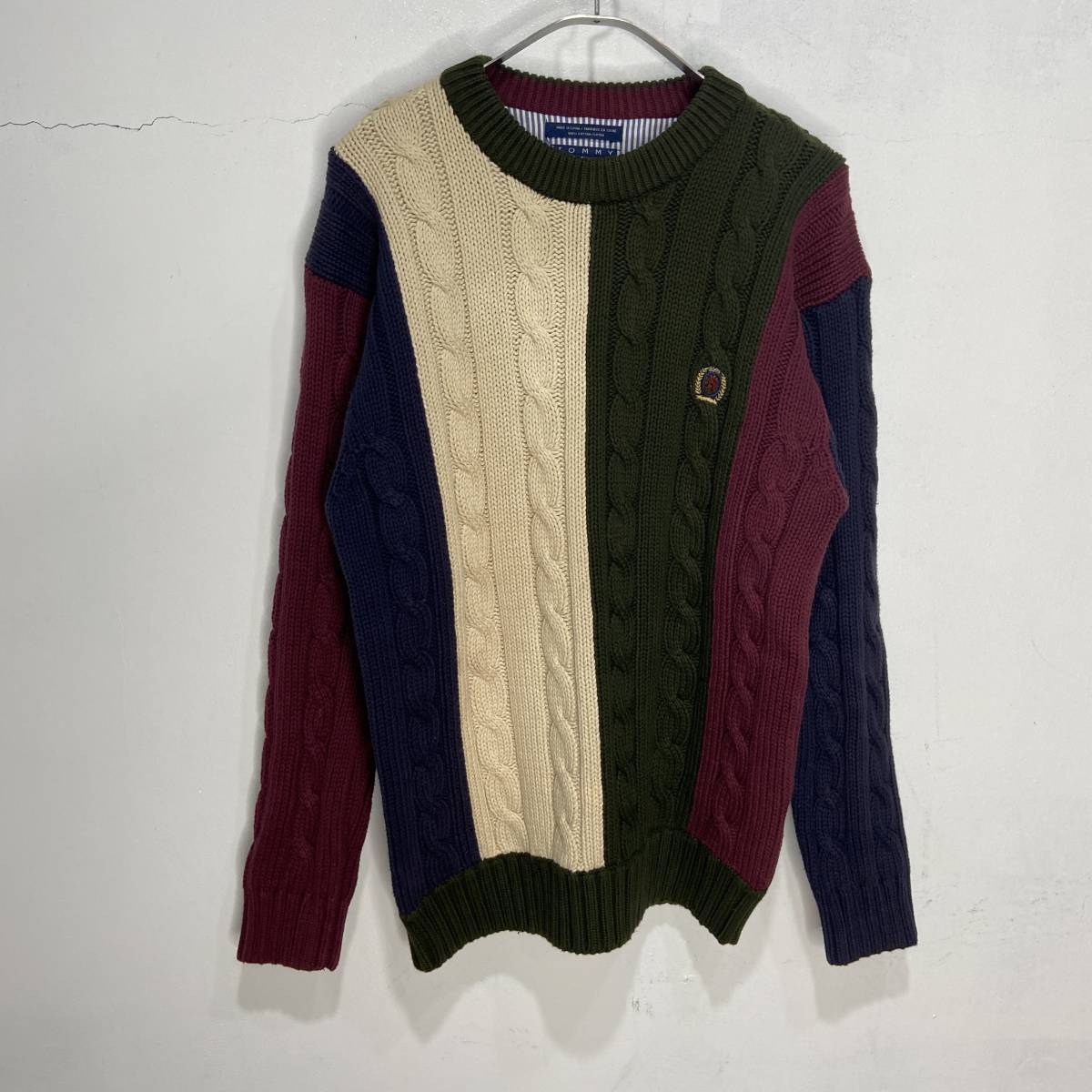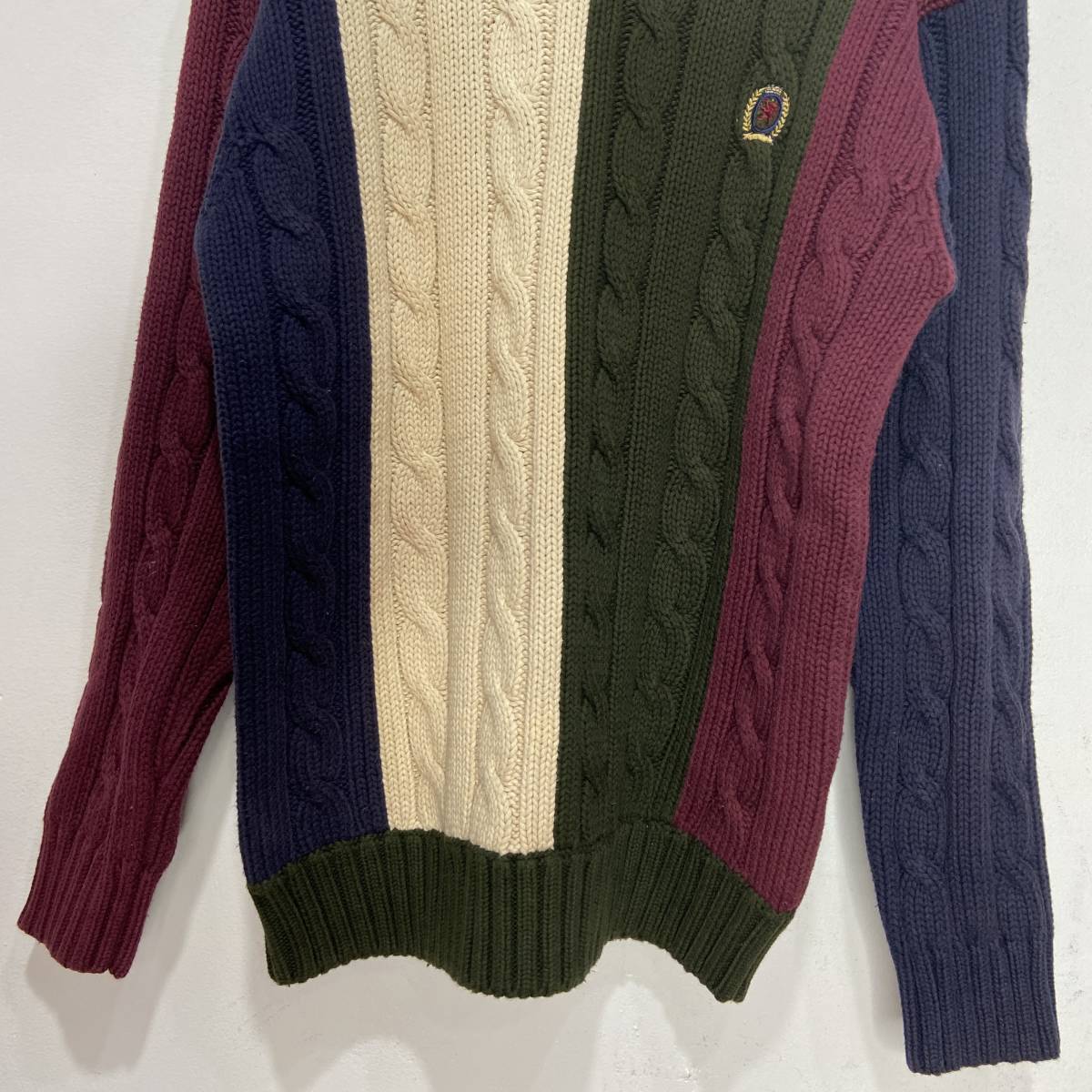 送料無料☆90s☆TOMMY HILFIGER☆トミーヒルフィガー☆クレイジーパターンセーター☆ケーブルニット☆ワンポイントロゴ☆M☆A24M