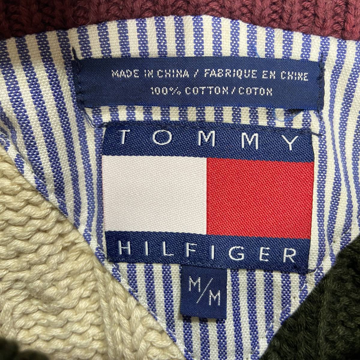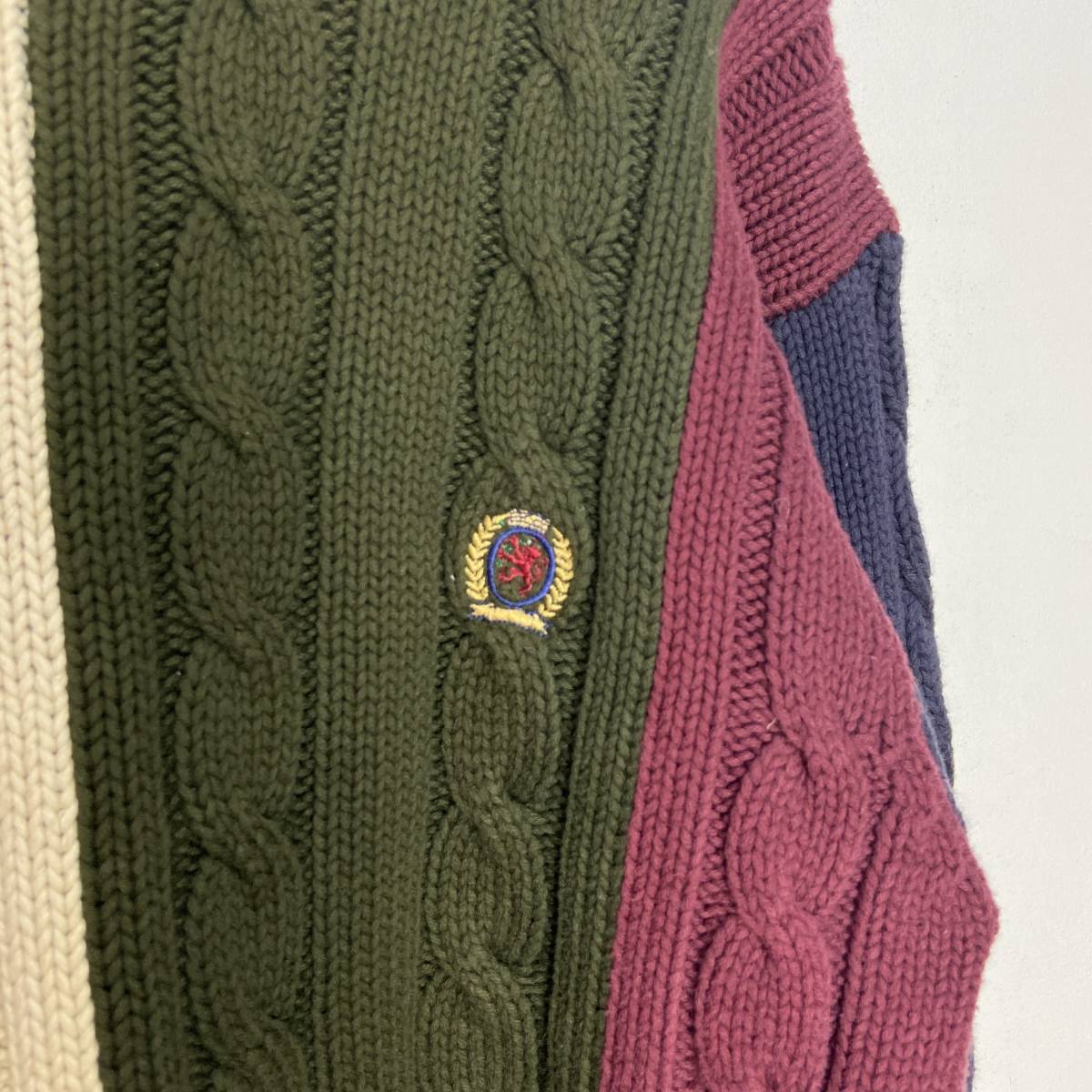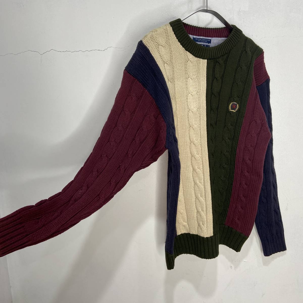 送料無料☆90s☆TOMMY HILFIGER☆トミーヒルフィガー☆クレイジーパターンセーター☆ケーブルニット☆ワンポイントロゴ☆M☆A24M