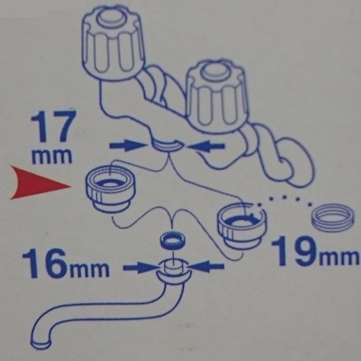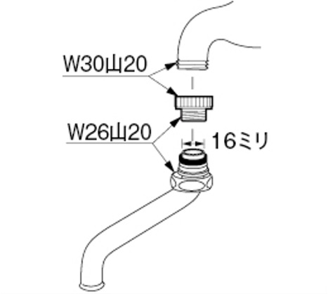ネジ アダプター 水栓パイプ19ミリ、17ミリ→16ミリ W30山20ネジ→W26山20