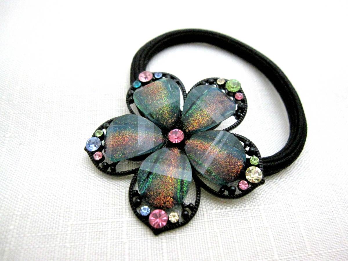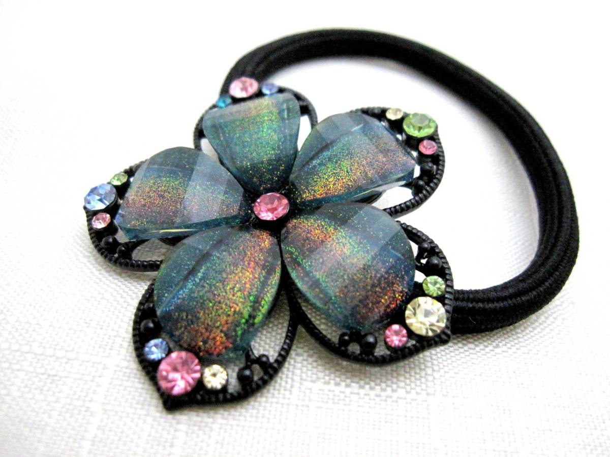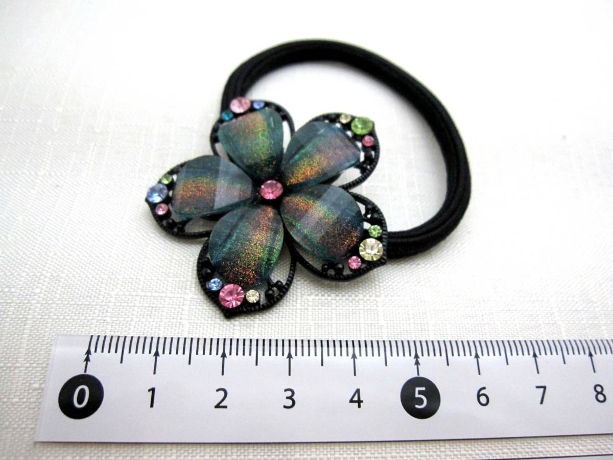 美品 ヘアゴム ネイビー ヘアアクセサリー*きらきら*髪飾り*和装*女子会*夜会巻*スワロ*フラワー*スター<210525-1>