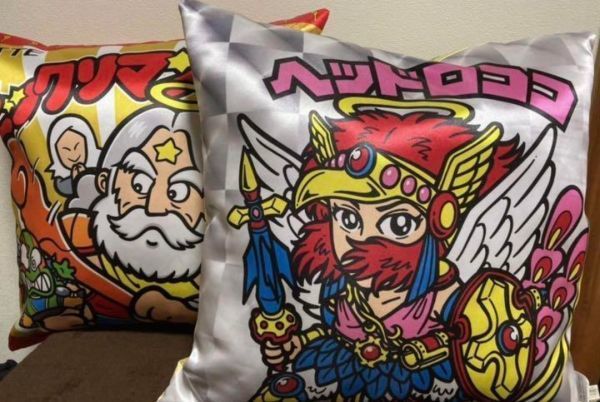 旧ビックリマンのパッケージがクッションカバーとなっています。