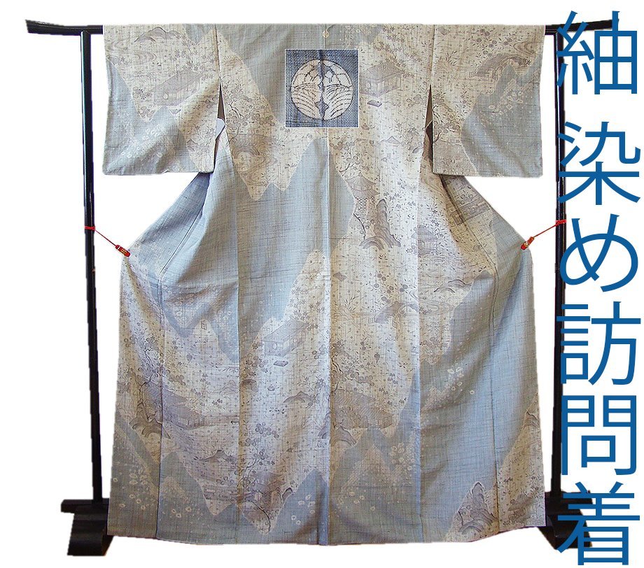 | ちょっと一言 | 着心地良い紬地に染め&絞り入りの洒落感高い着物姿を謳う粋な紬地の訪問着です。 帯や小物次第で自分らしい様々な表情をお愉しみ頂けることでしょう。 |