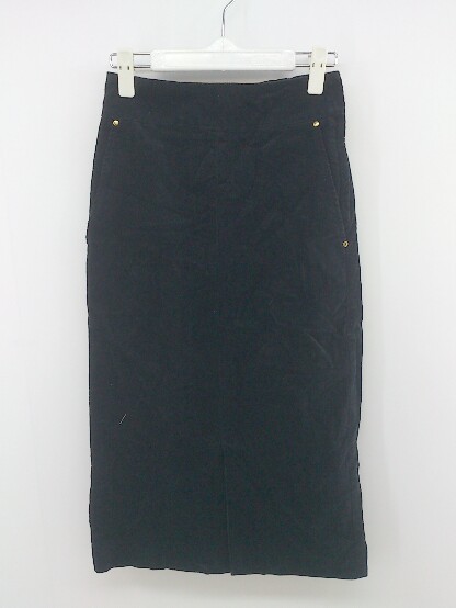 ◇ SALON adam et rop? ウエストゴム コーデュロイ 膝下丈 タイト ナロー スカート サイズXS ダークネイビー レディース P