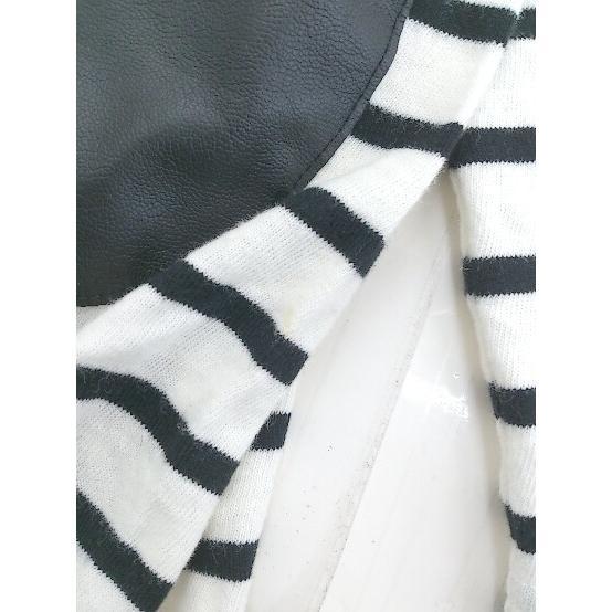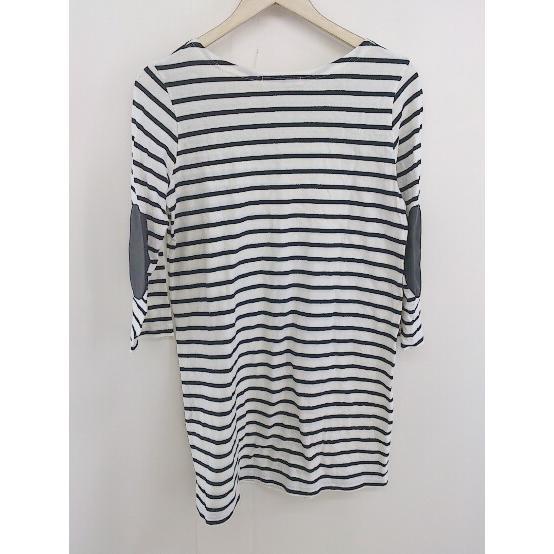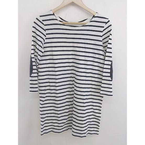 ◇ Another Edition ボーダー エルボーパッチ 七分袖 チュニック カットソー アイボリー ブラック レディース