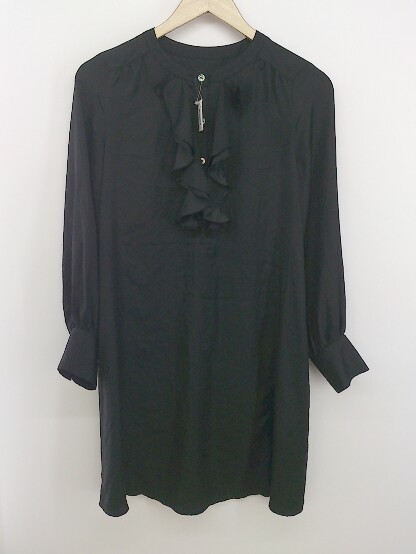 ◇ green label relaxing バンドカラー フリル 長袖 ミニ ワンピース ブラック レディース P