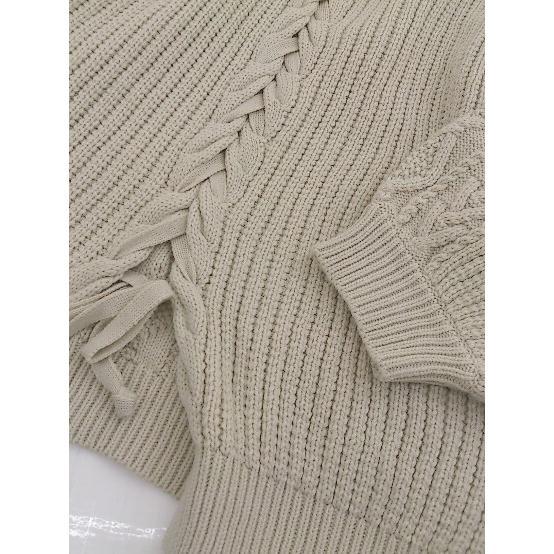 ◇ Heather ヘザー ケーブルニット レースアップ 長袖 セーター サイズF ベージュ レディース