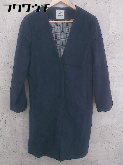 ◇ nano universe ナノユニバース ノーカラー コート サイズ38 ネイビー レディース